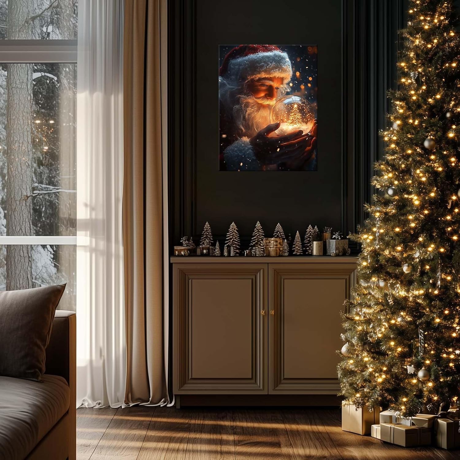 B.B.F MAKE Christmas Canvas Framed Wall Art for Living Room Decor Classical Oil Painting Santa Claus & Crystal Ball Canva Poster Prints Wall Decoration Home Office Bedroom Bathroom Decor, 16x20inch