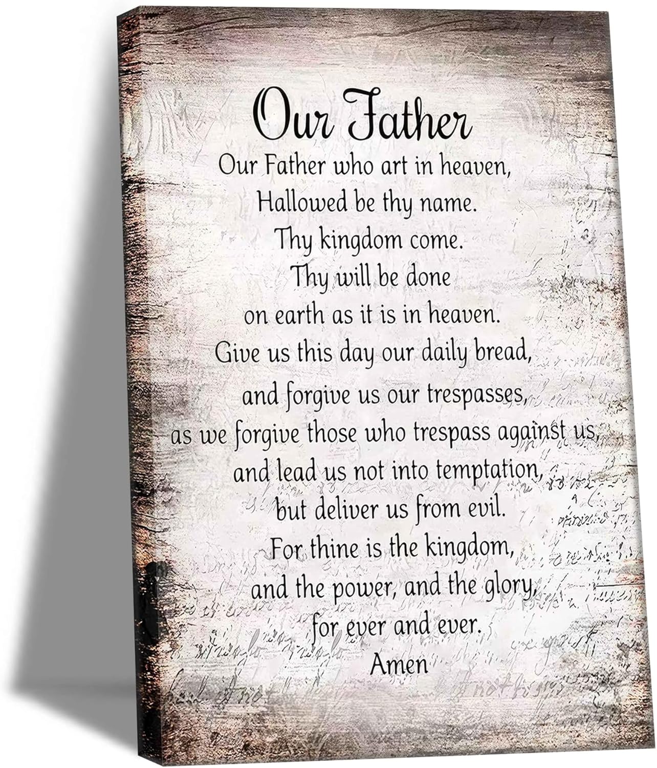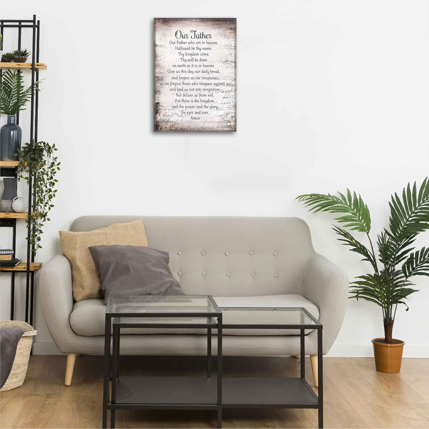 Bible Verse Canva Wall Art Our Father Prayer Poster Picture The Lords Prayer Print Inspirational Quotes Painting for Spiritual Gift Christian Office Church Wall Decor Framed