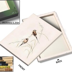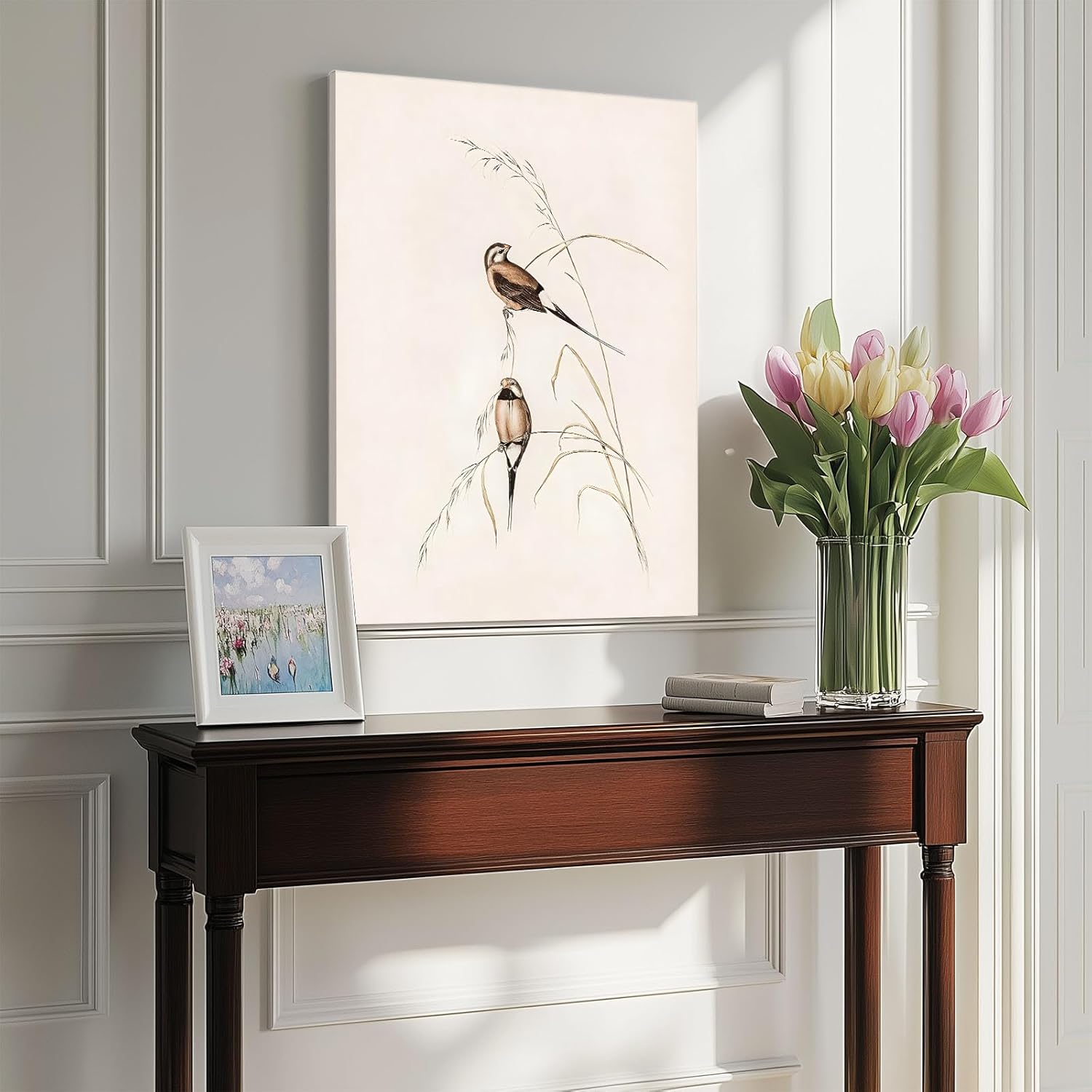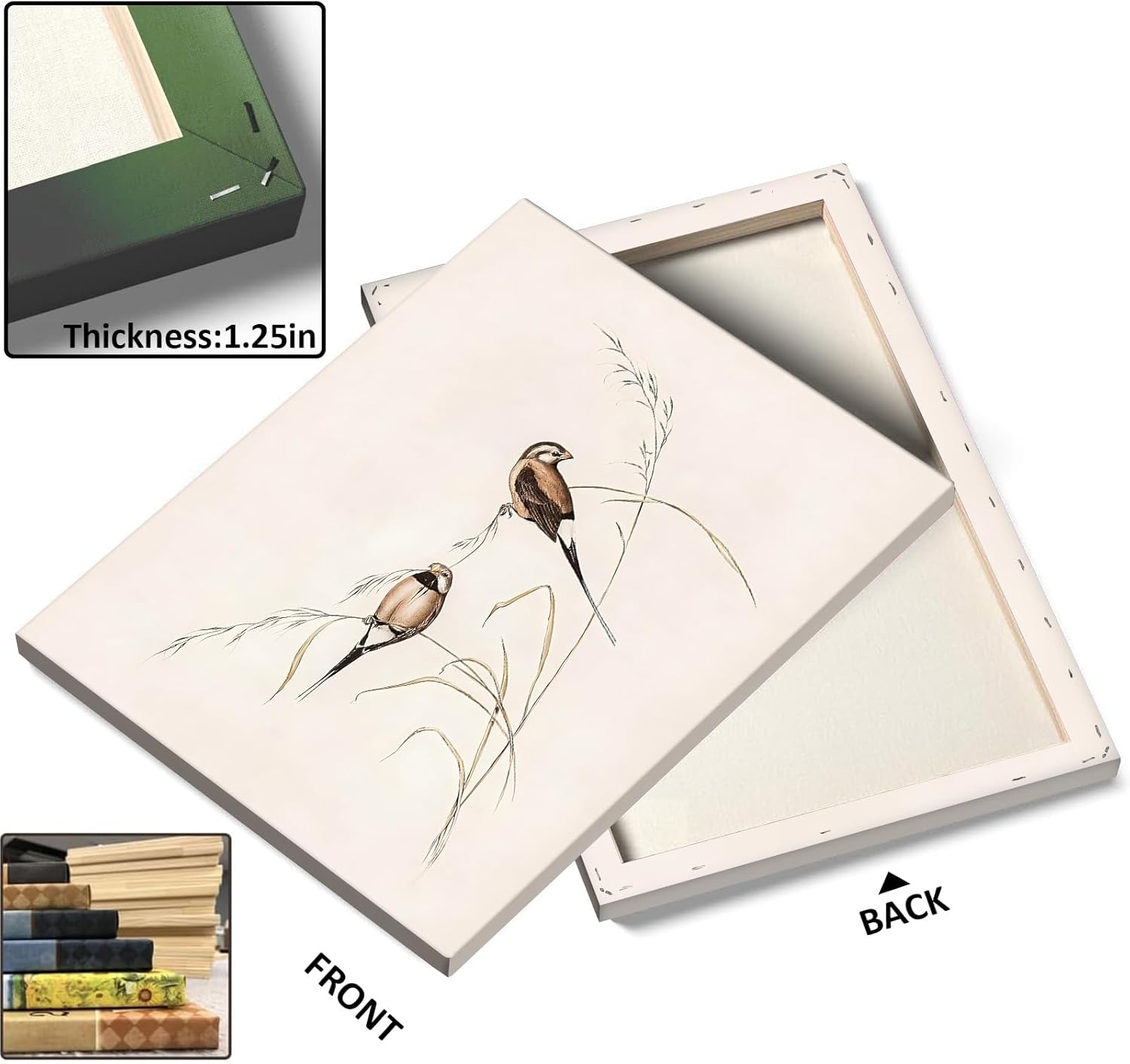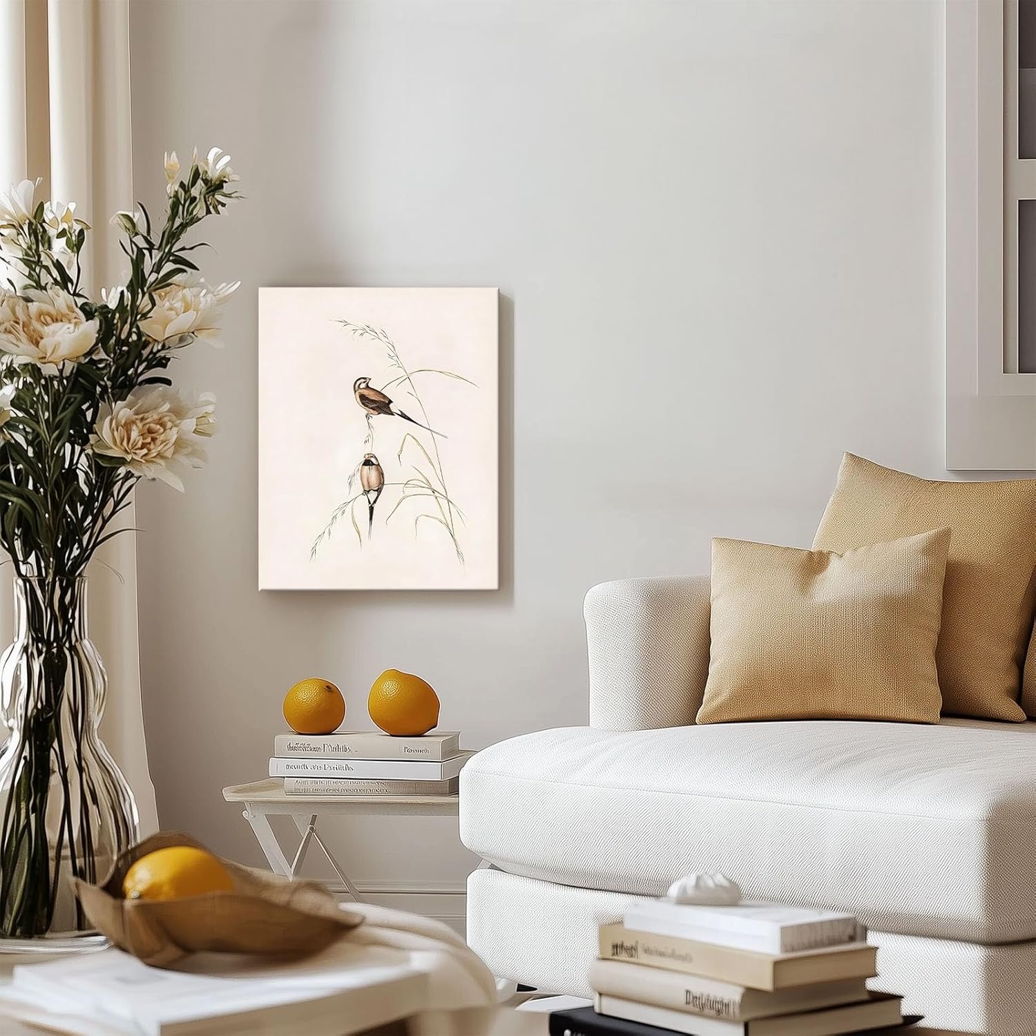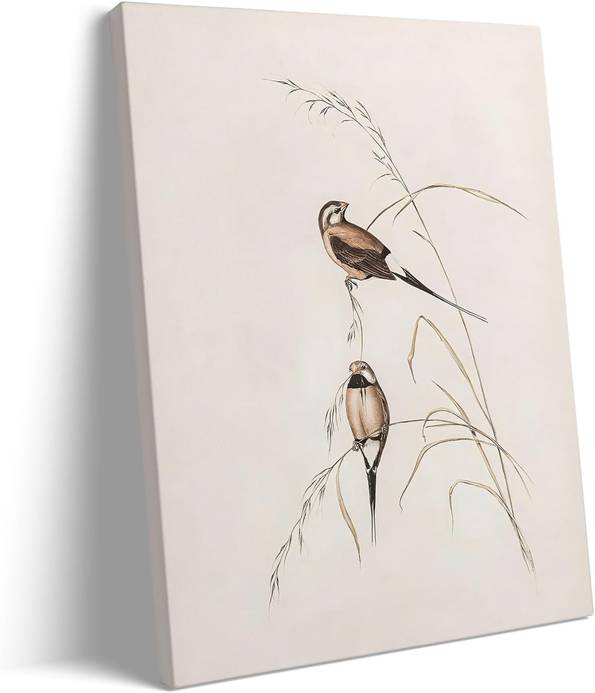 Brown Bird on Branch Canvas Wall Art, Small Songbird in Nature Picture Print, Vintage Animal Framed Poster Artwork, Rustic Wildlife Oil Painting for Bedroom or Garden Room 8x10inch