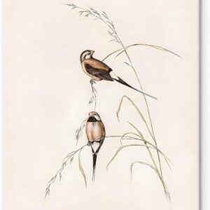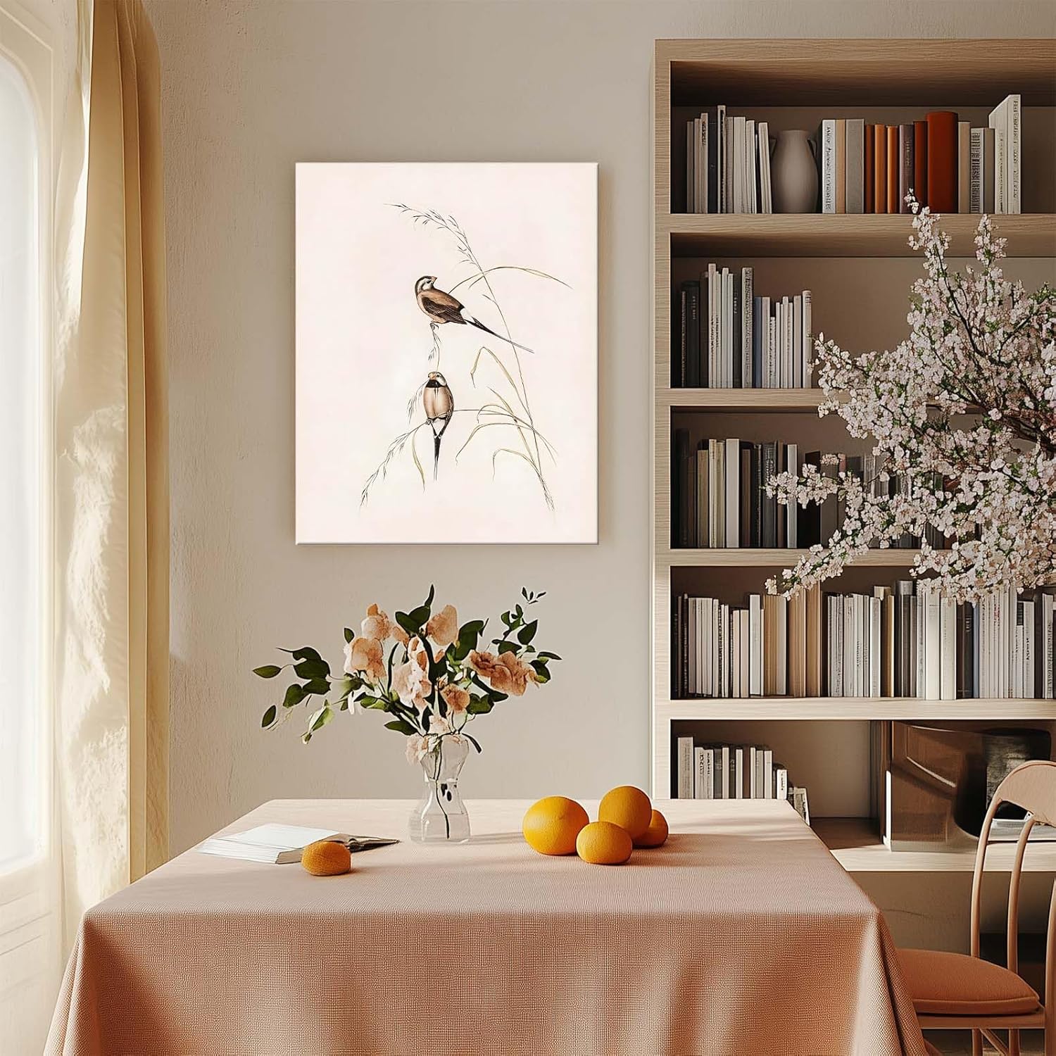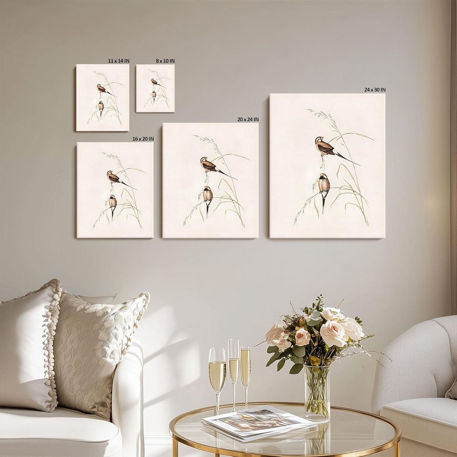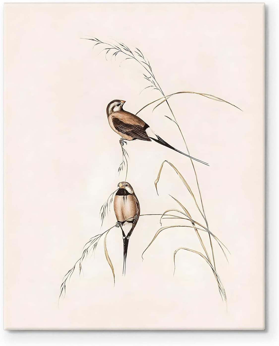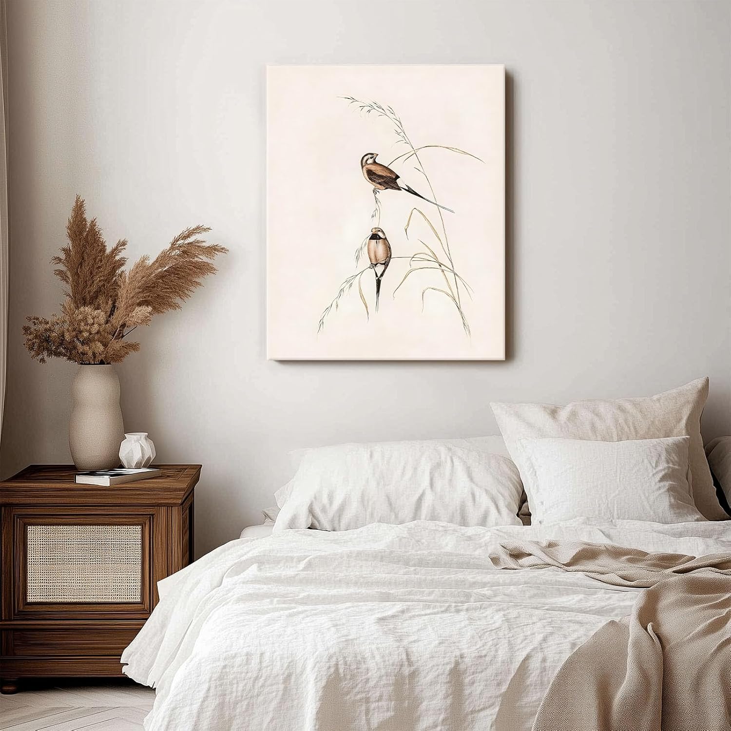 Brown Bird on Branch Canvas Wall Art, Small Songbird in Nature Picture Print, Vintage Animal Framed Poster Artwork, Rustic Wildlife Oil Painting for Bedroom or Garden Room 8x10inch