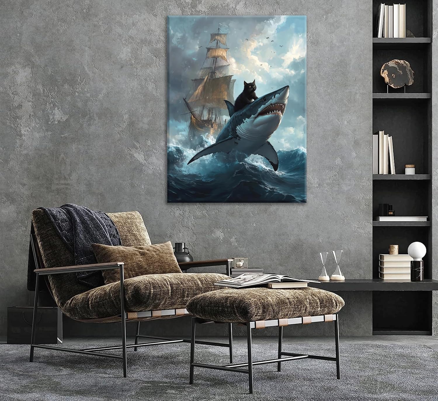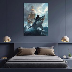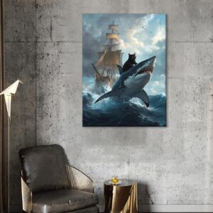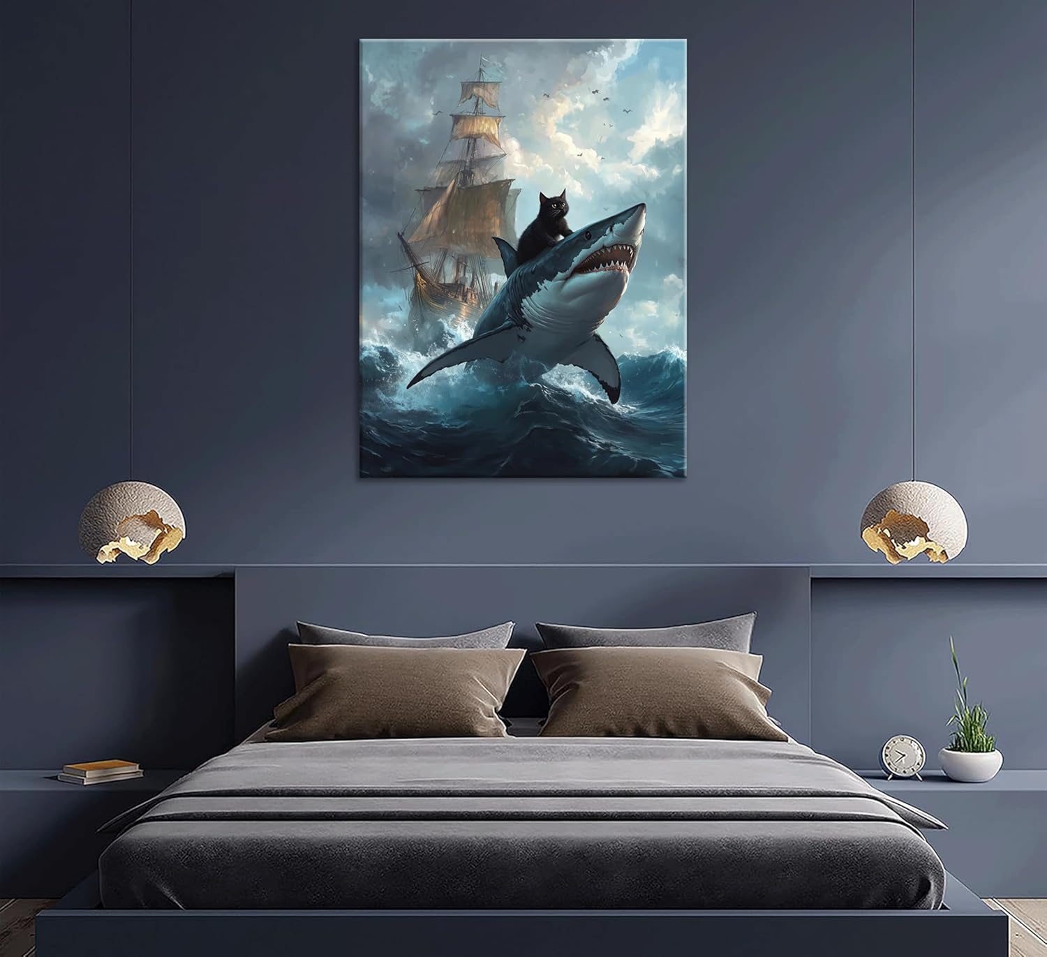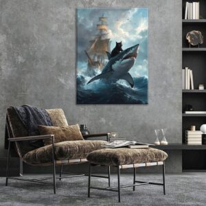 - Versatile Room Decor:These cat and shark canvas prints are perfect for a variety of spaces, including bedrooms, living rooms, bathrooms, and any other room that could use a fun and quirky touch.whether displayed individually or as a set. These cat wall art and shark wall art pieces will enhance the aesthetic of any room
