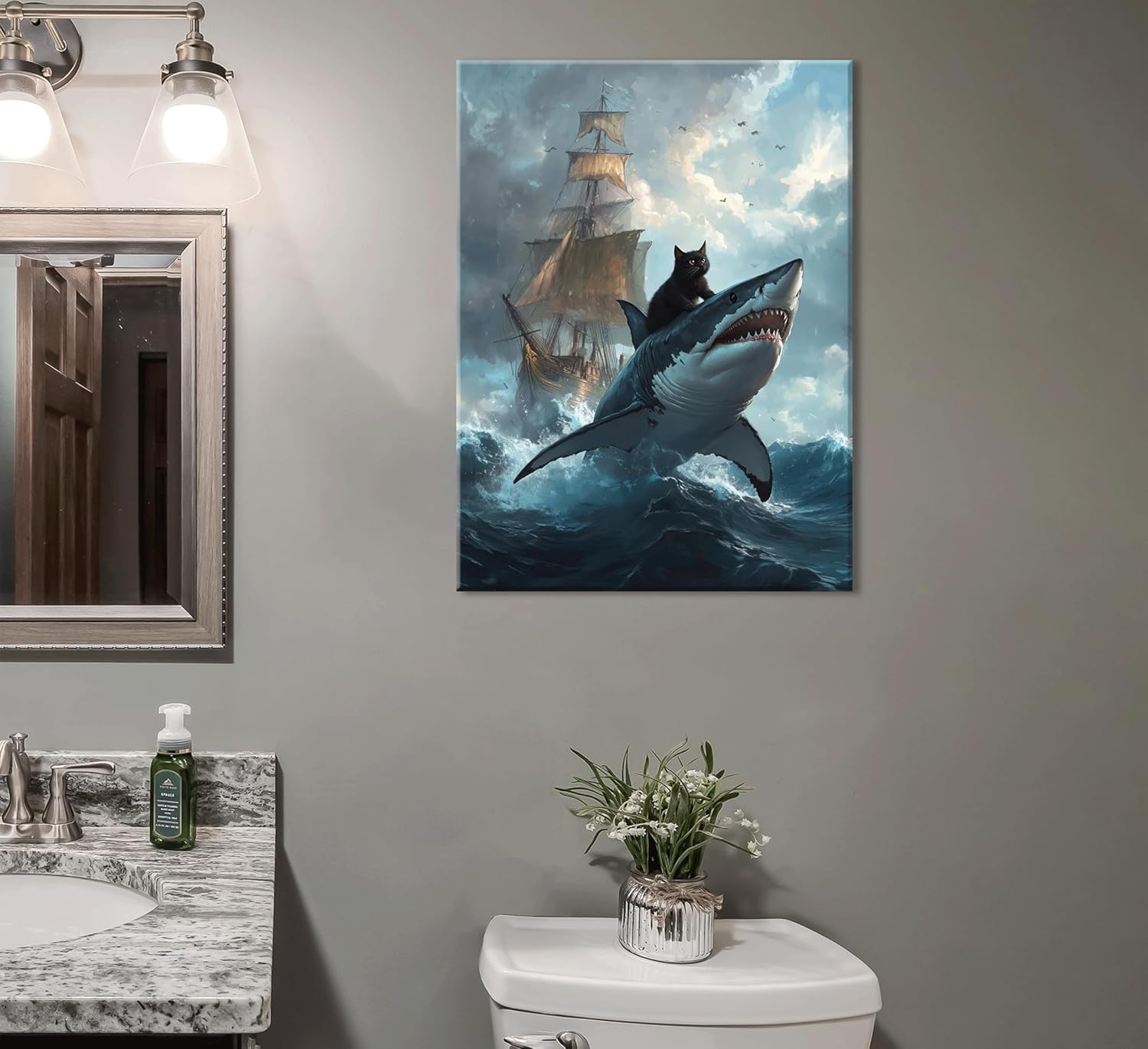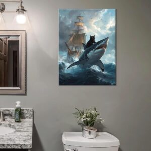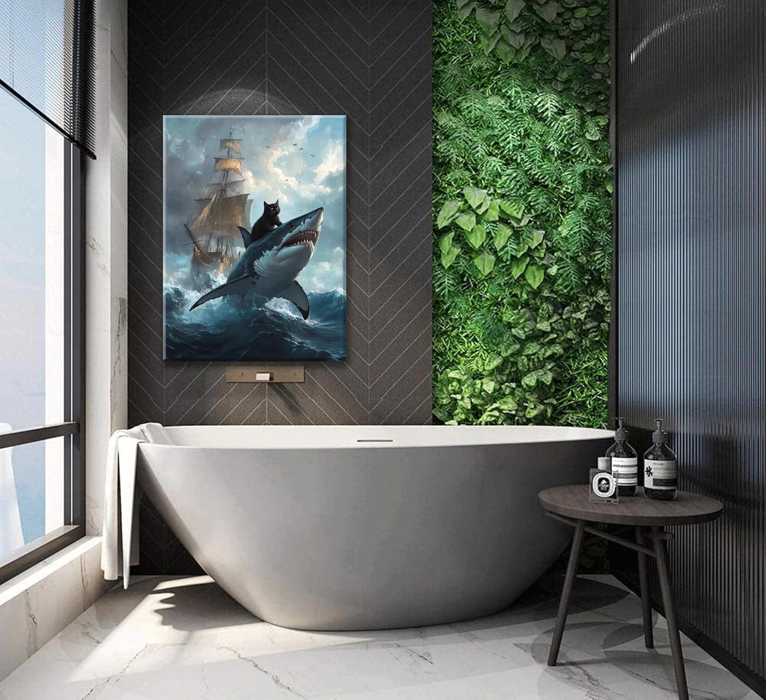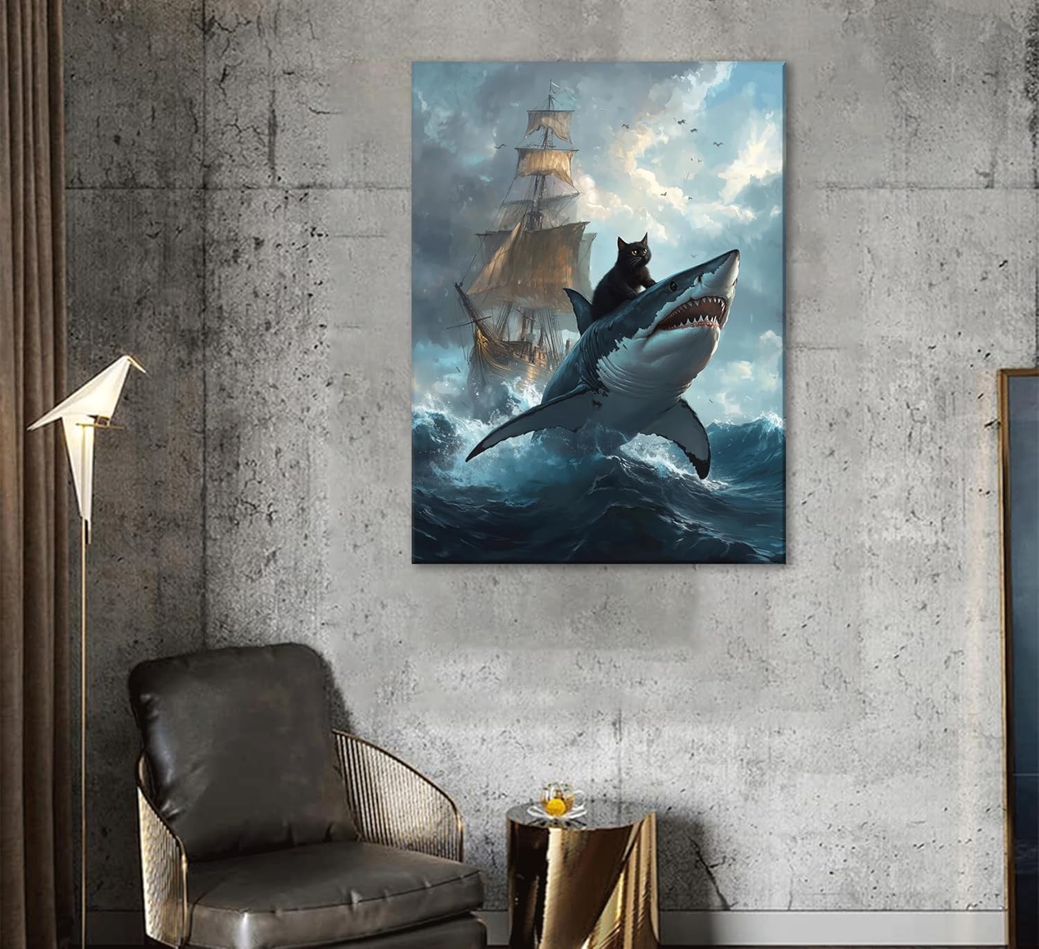 - Versatile Room Decor:These cat and shark canvas prints are perfect for a variety of spaces, including bedrooms, living rooms, bathrooms, and any other room that could use a fun and quirky touch.whether displayed individually or as a set. These cat wall art and shark wall art pieces will enhance the aesthetic of any room
