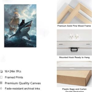 - Funny Cat vs. Shark Wall Art:We offer various sizes, including 12×16 inches, 16×24 inches, making it perfect for hanging in various spaces in your home.if you choose have Framed each panel of canvas prints already stretched on solid wooden frames, gallery wrapped, with hooks and accessories, ready to hang