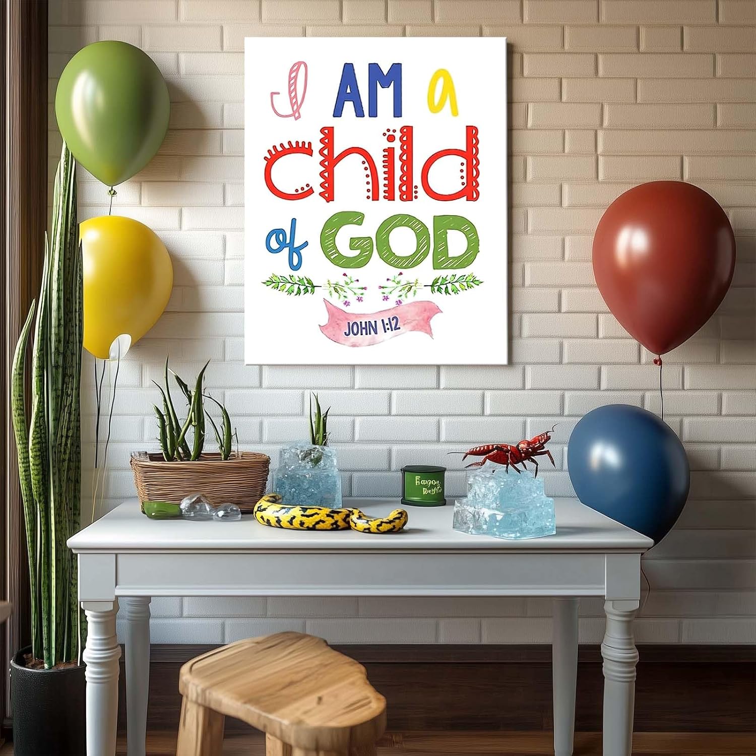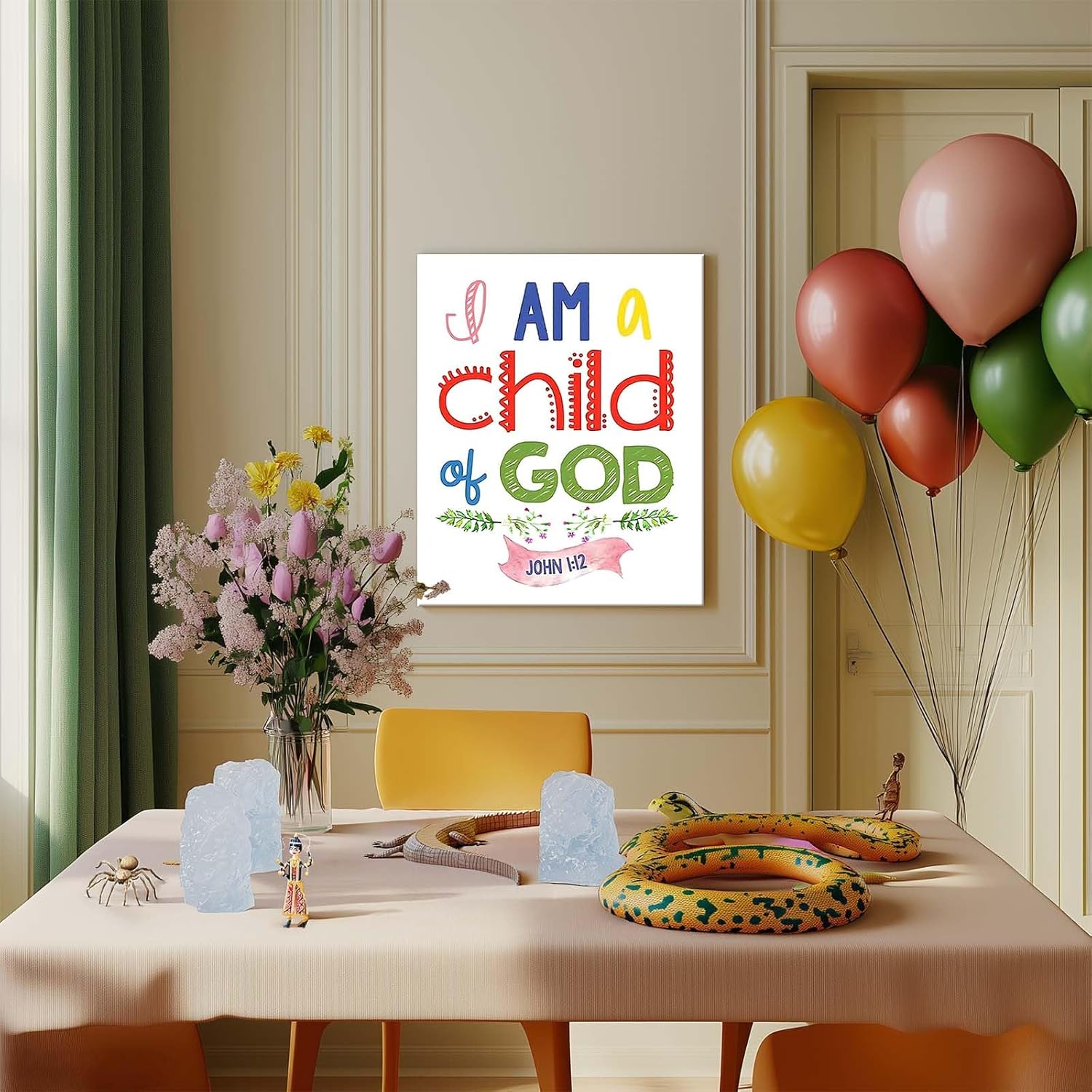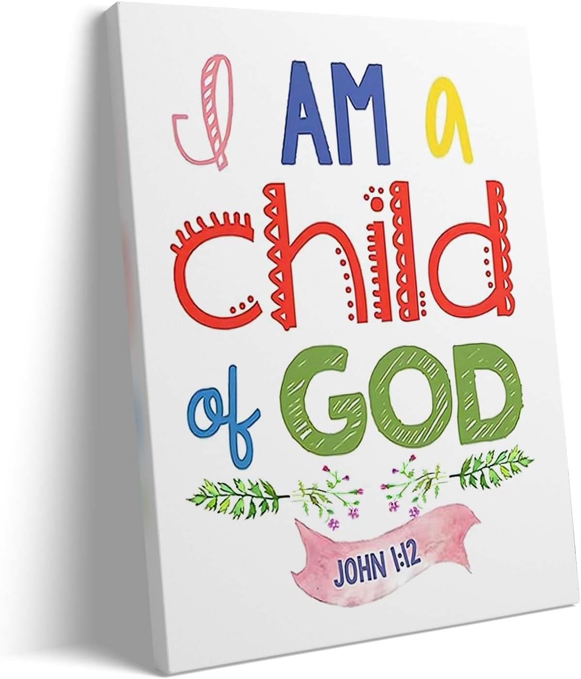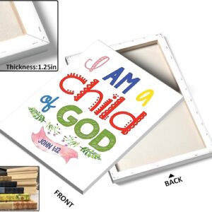 Christian Canvas Wall Art, I Am a Child of God Inspirational Quote Pictures Print, Religious Wall Painting Decor for Home, Church, and Office, John 1:12 Bible Verse Framed Artwork 24″ x 30″