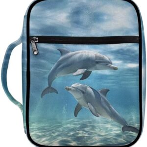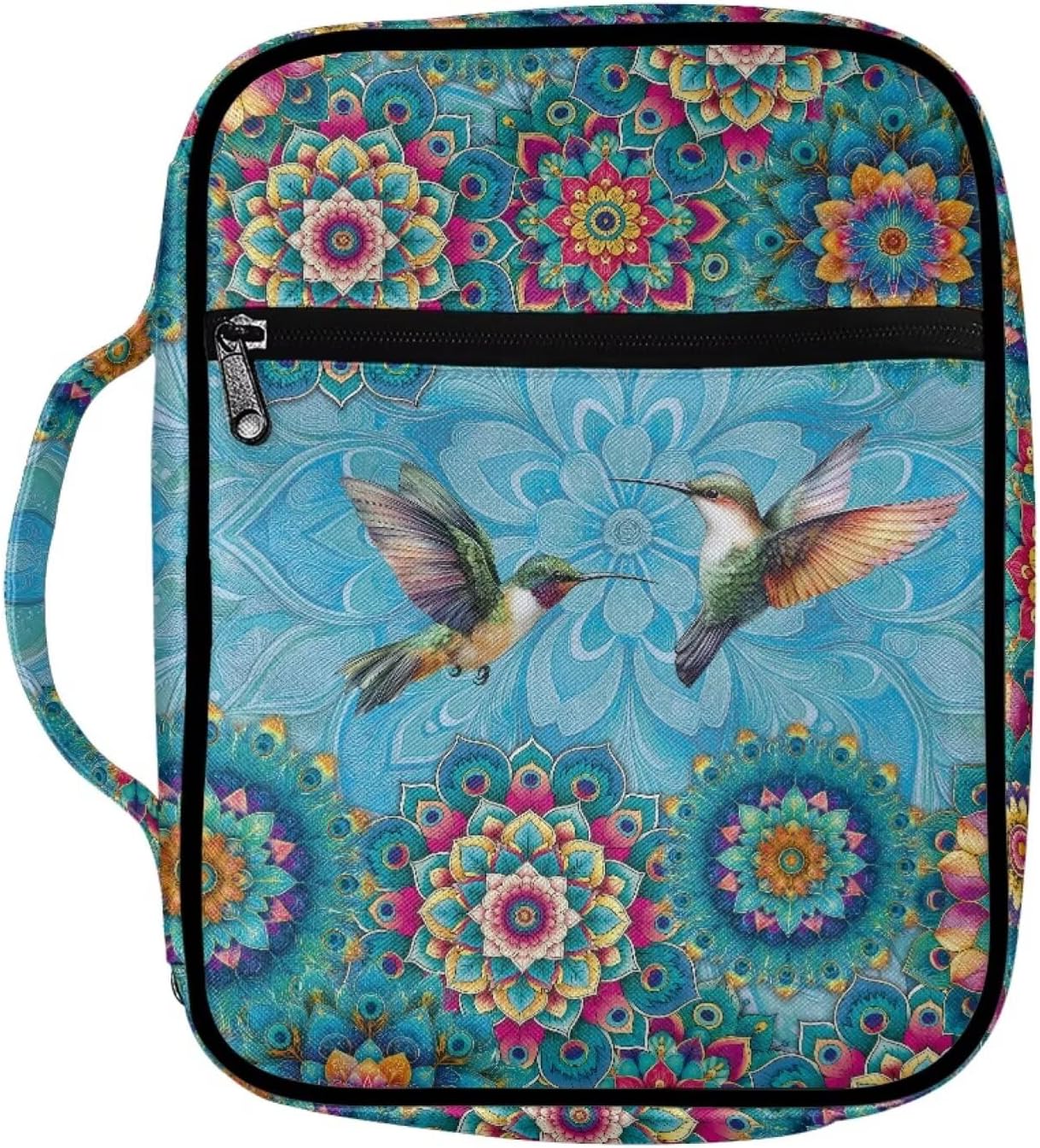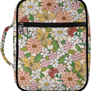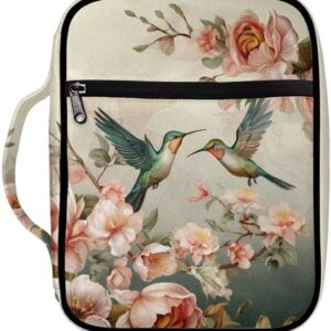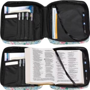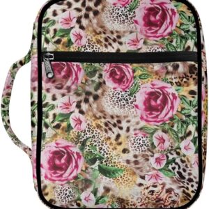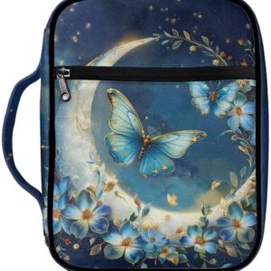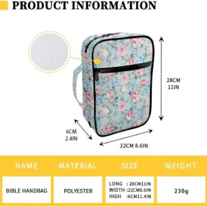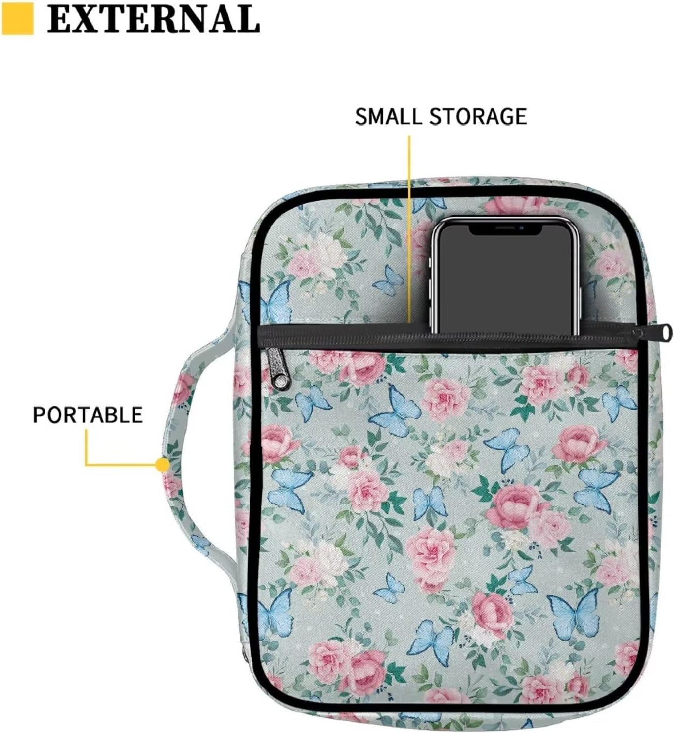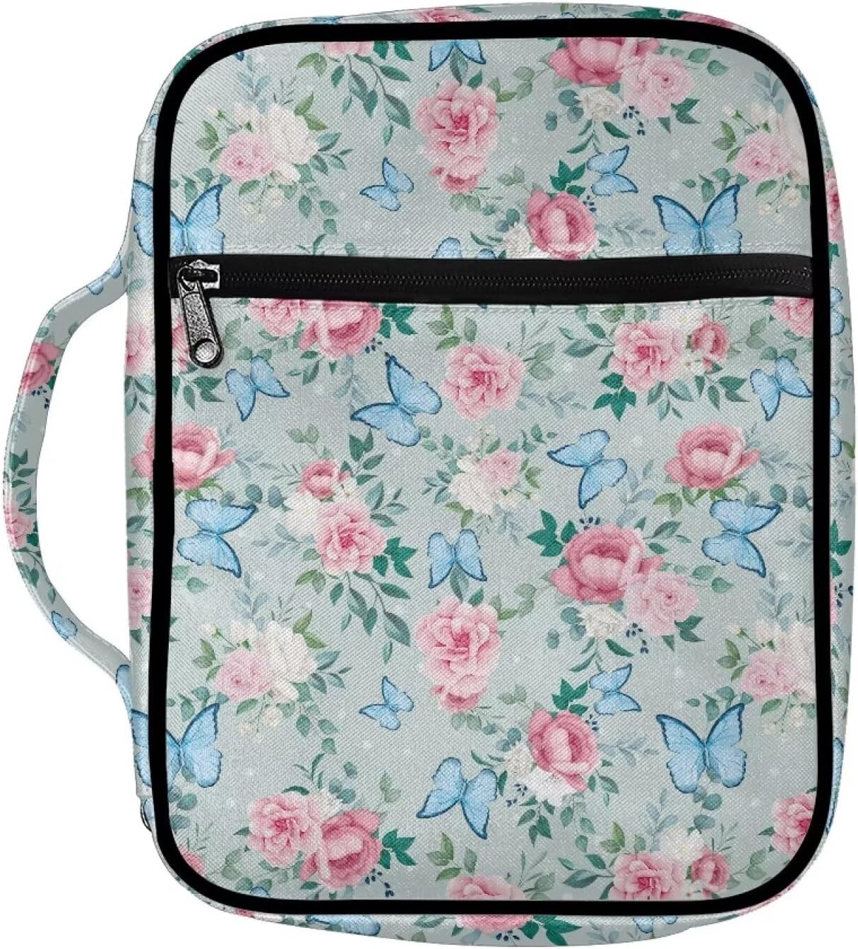 Coldinair Pink Rose Print Bible Covers for Women Blue Butterfly Carrying Book Case Church Bag Bible Protective with Bookmark with Zippered Pocket Church Bag Bible Protective Handbag