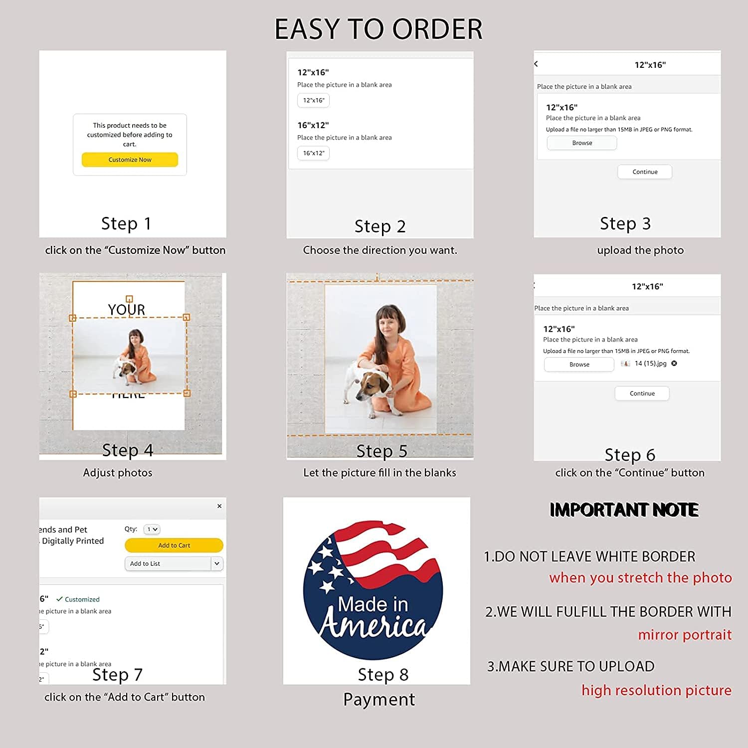 - Custom Prints Poster Framed Canvas: Transform your favorite photos into beautiful canvas prints, photo print is perfect for bringing your special moments to life. Whether it's a funny snapshot with friends or a cherished family vacation, your walls will be filled with precious memories, including those with your beloved pets, like dogs and cats.