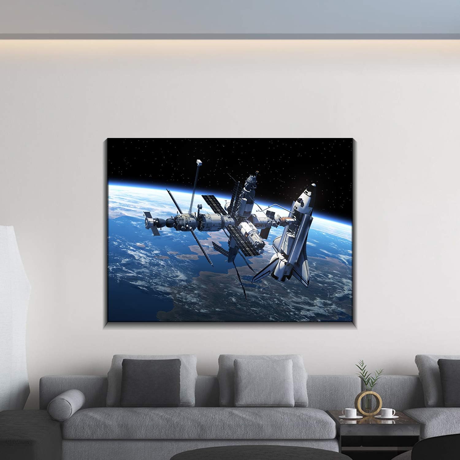 Denozer – International Space Station and Earth Poster Canvas Print Wall Art Landscape Picture Printed on Canvas NASA Home Decoration Giclee Artwork Ready to Hang 30×20 inches