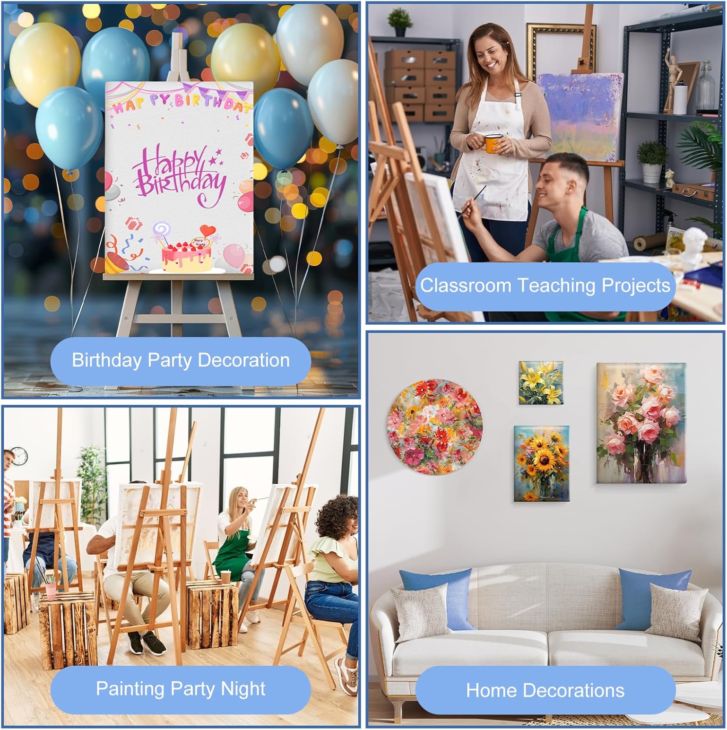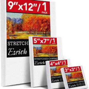 ESRICH 12 Pack Stretched Canvas for Painting, 4×4, 5×7, 8×10, 10×12, 12×16(2 of Each) Canvas and Round Canvas with 8×8, 12×12(1 of Each), Blank Canvases Primed Paint Canvas for Beginners, Artists.