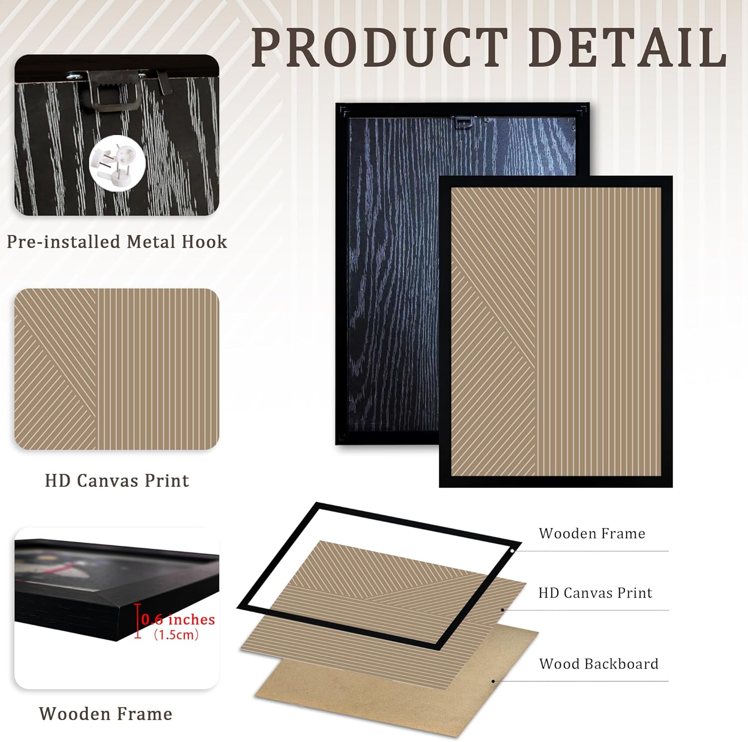 FWAHREN Framed Modern Abstract Minimalist Neutral Canvas Wall Art, Geometric Textured Line Mid Century Prints Artwork, Contemporary Japandi Wall Decor, Living Room Bedroom Office, Set of 3, 12x16in