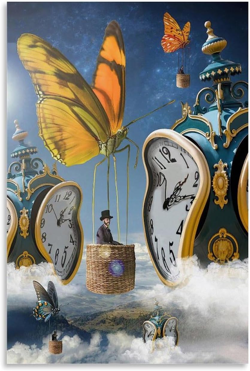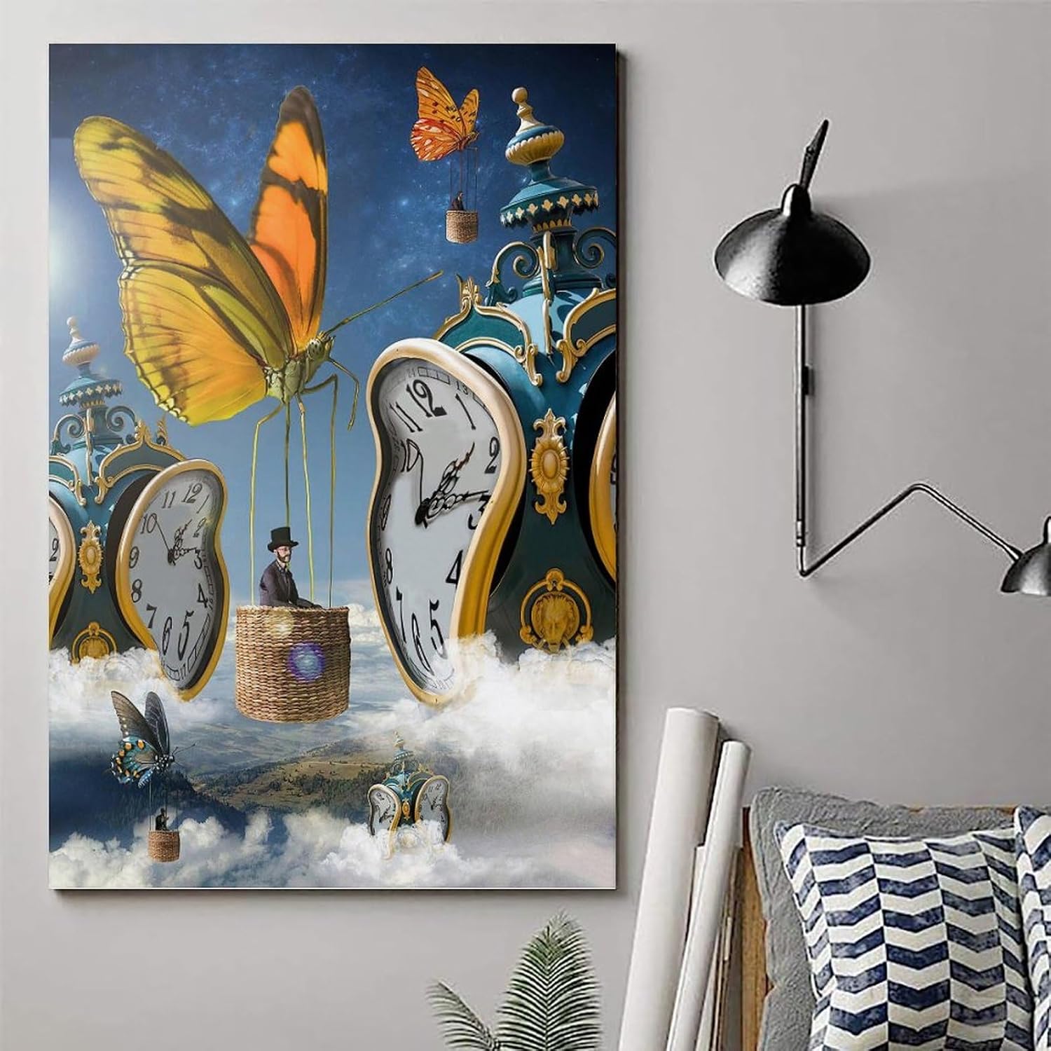 generic Salvador Dali Oil Painting Poster Butterfly Clock Art Canvas Art Wall Painting Home Bedroom Printing Modern Decoration Poster 16x24inch(40x60cm), Unframe-style