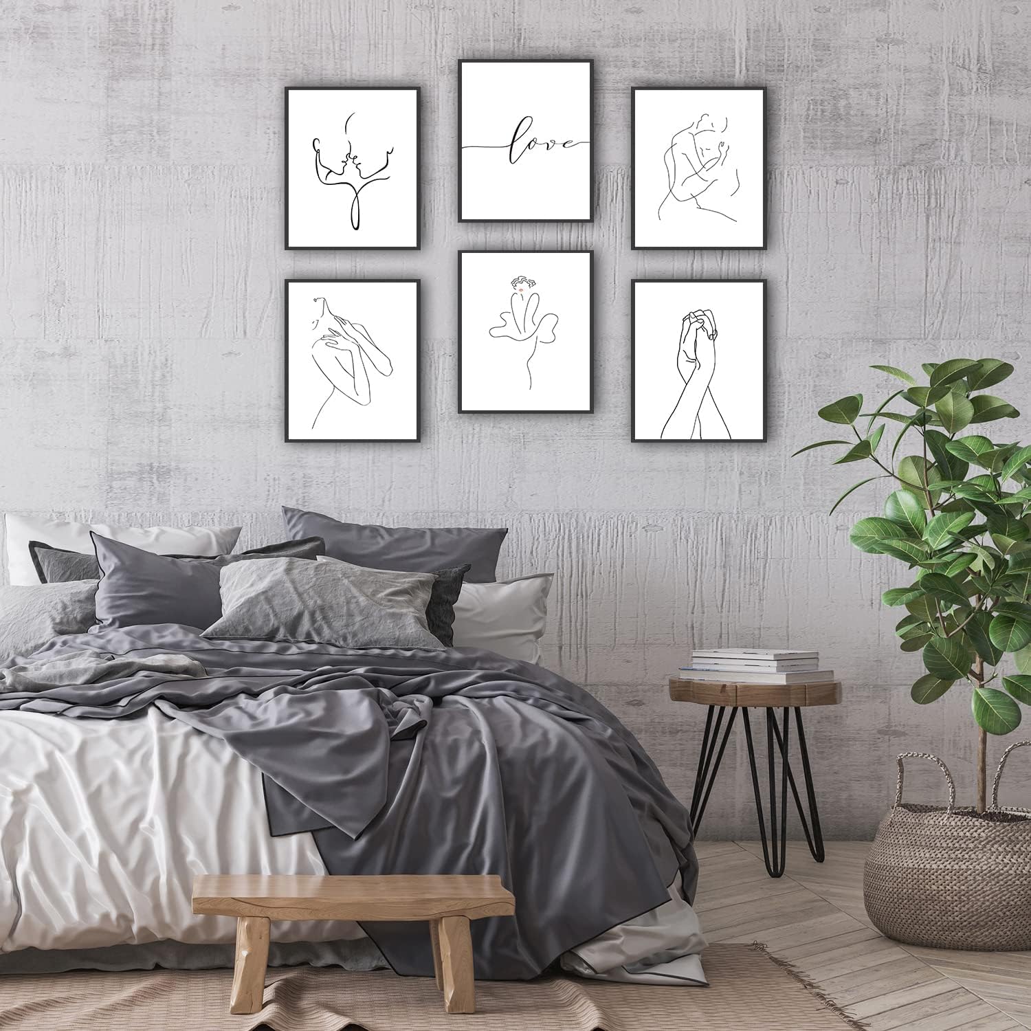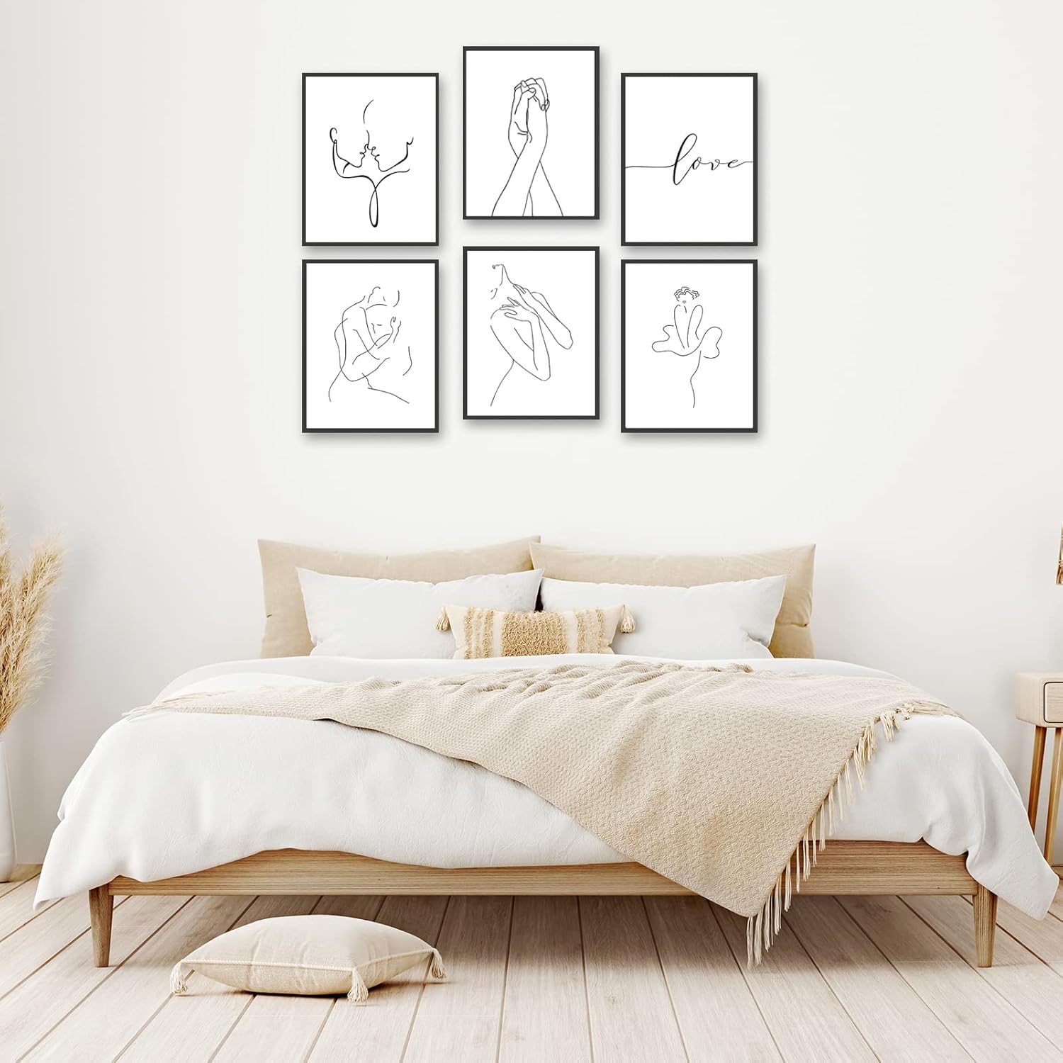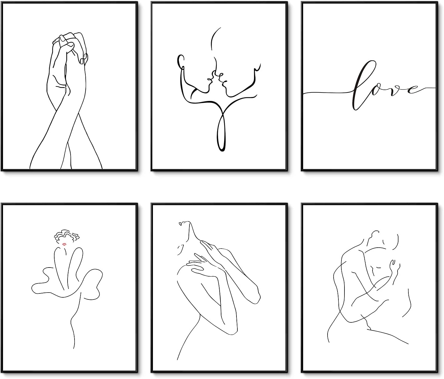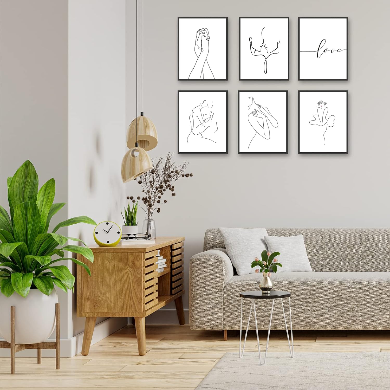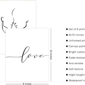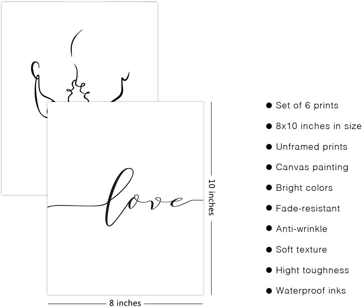 HoozGee Minimalist Wall Art Prints Set of 6 Black and White Love Line Art Wall Decor Abstract Canva Wall Art Pictures Art Posters for Living Room Bedroom Office Home Decor (8″x10″ UNFRAMED)