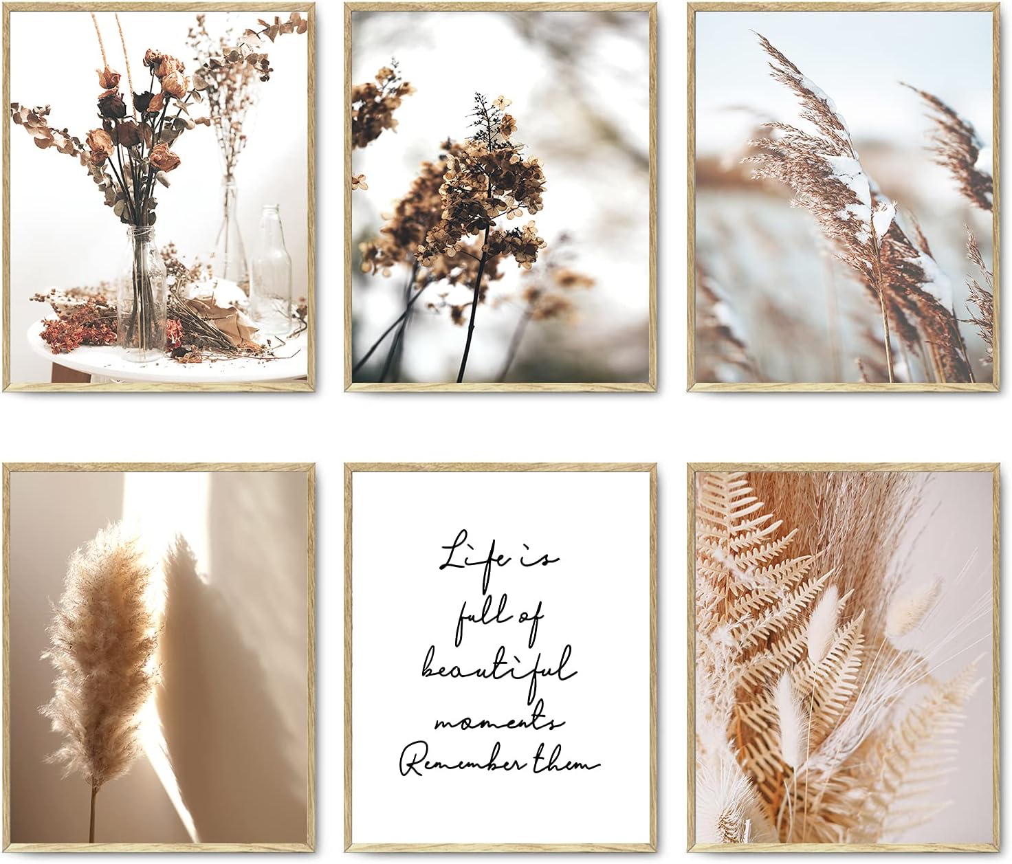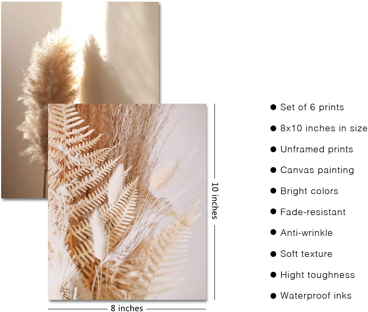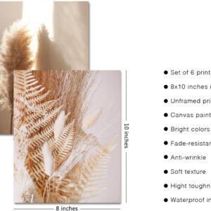 HoozGee Nature Wall Art Prints Set of 6 Canvas Art Wall Decor Botanical Print Pictures Reed Dried Flower Plant Poster Print Home Decorations for Living Room Wall Decor (8″x10″ UNFRAMED)
