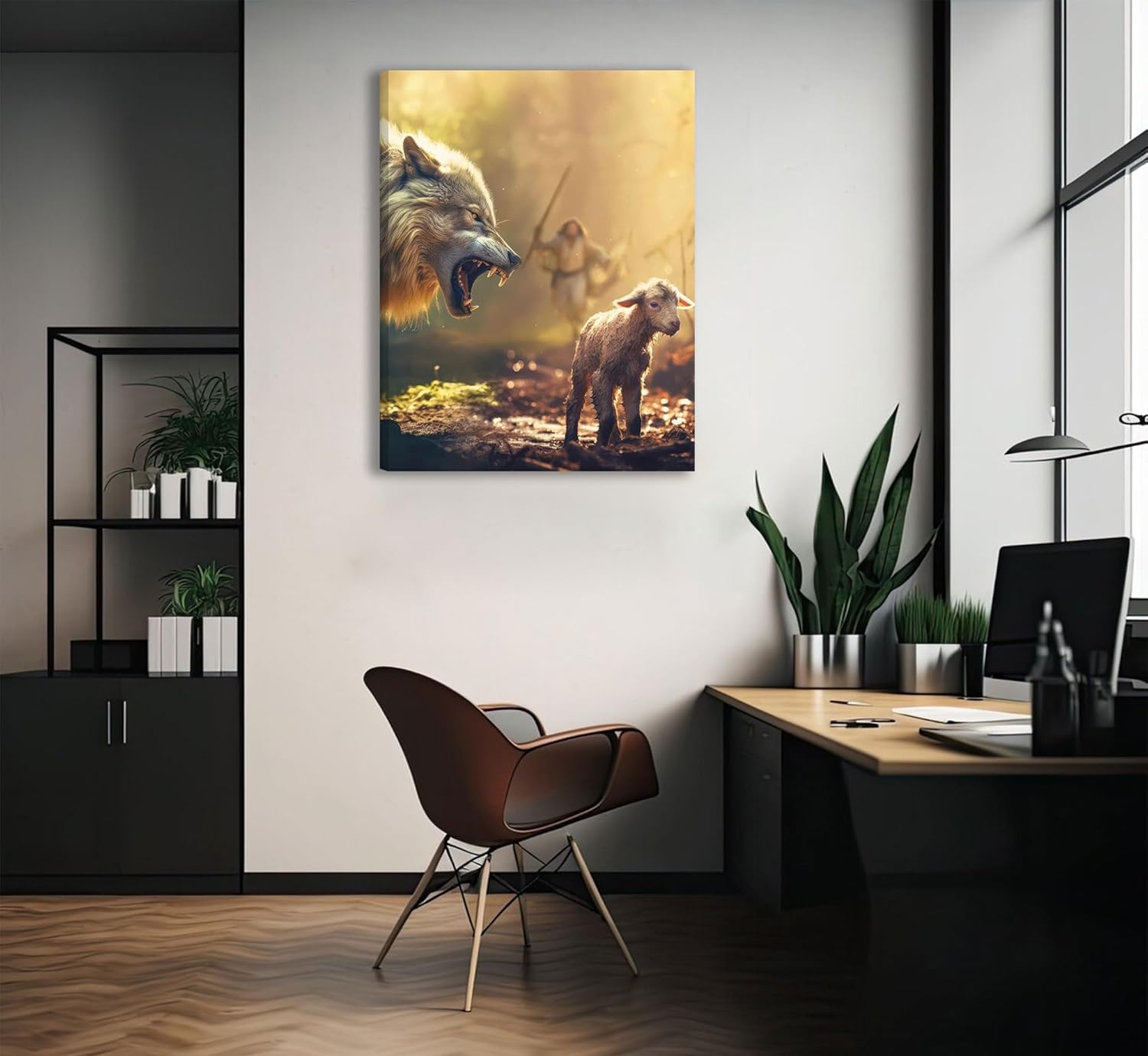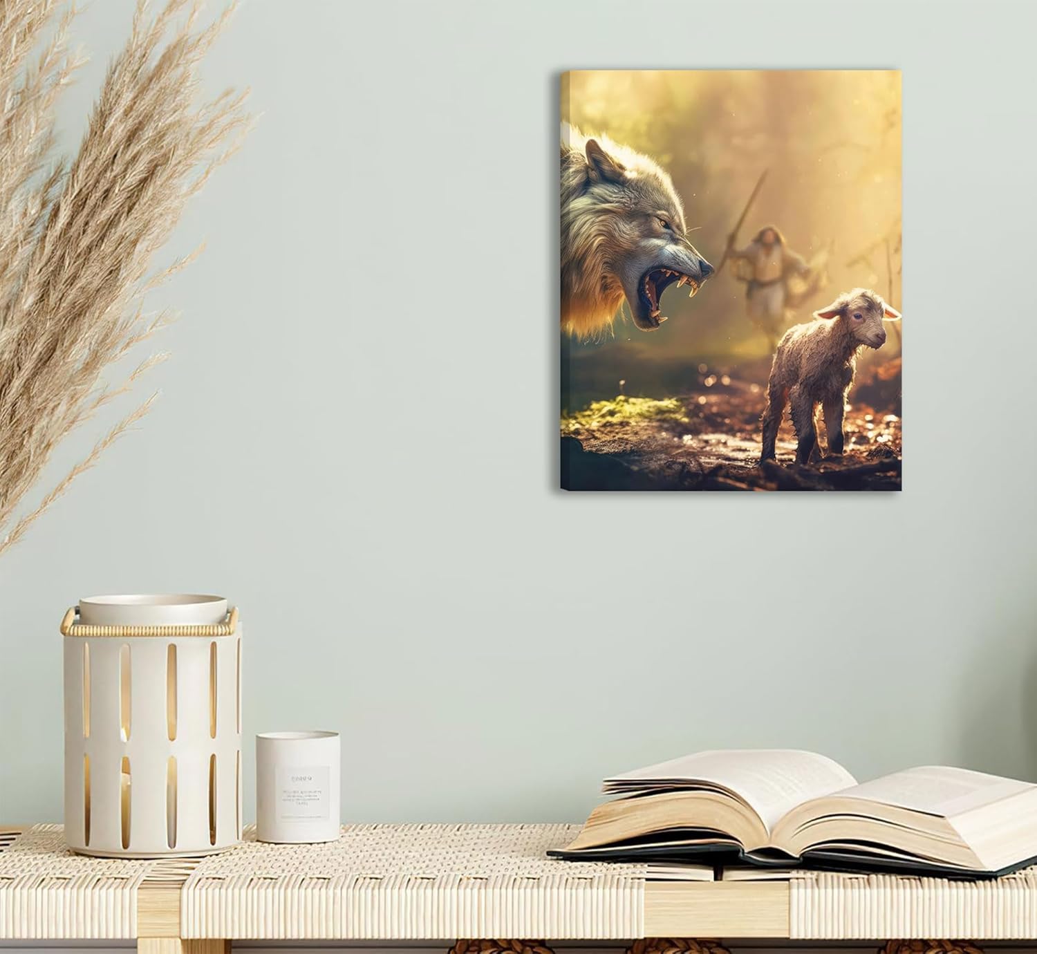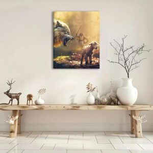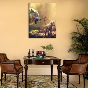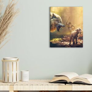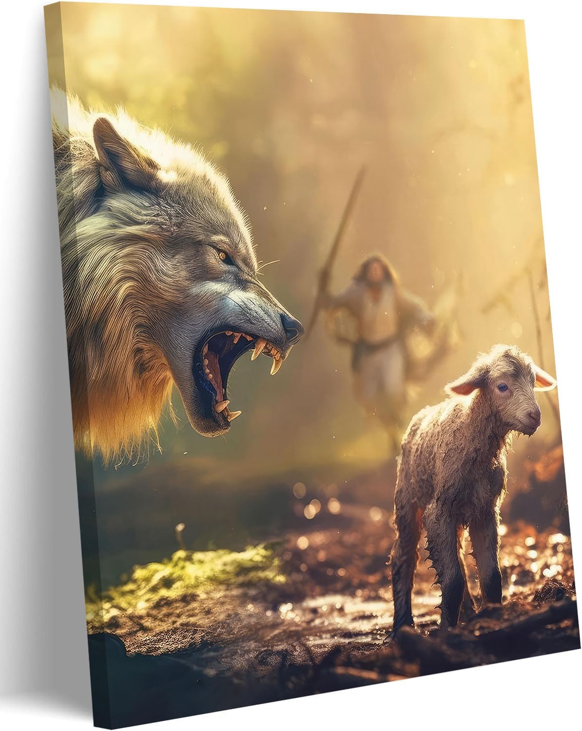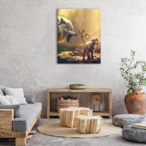 Jesus Saves The Lamb Canvas Wall Art Jesus Running Towards The Wolf And The Lamb Picture Wall Decor Christian Jesus Poster Print Painting for Living Room Bedroom Church Home Decoration