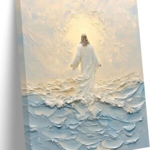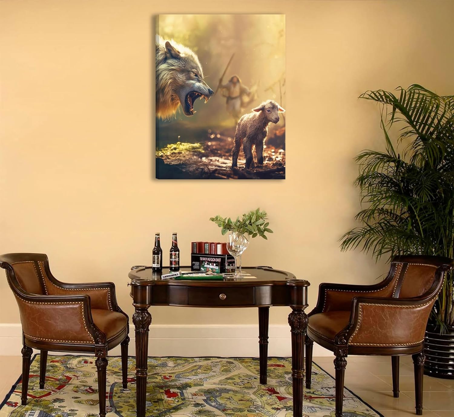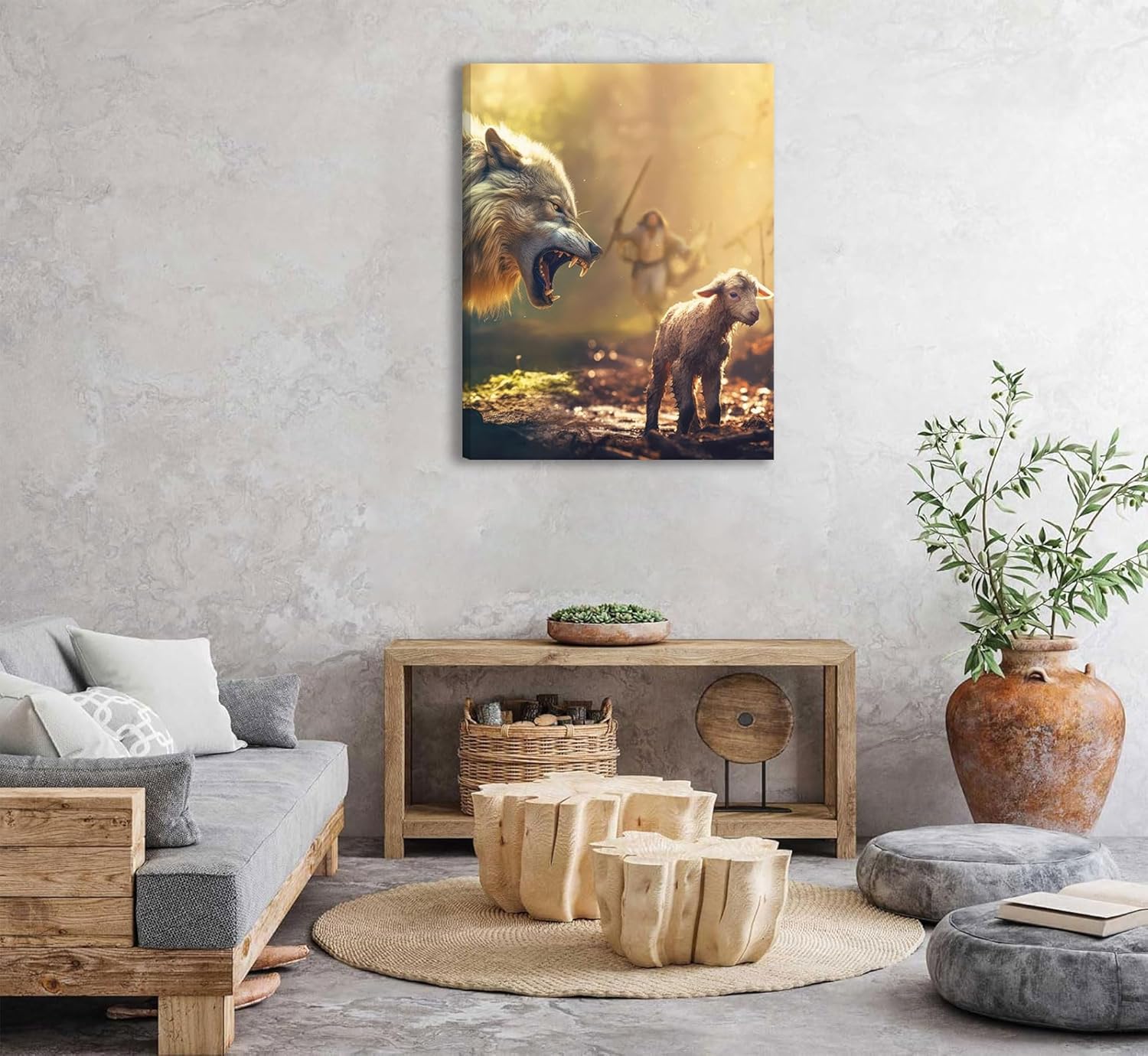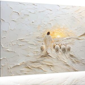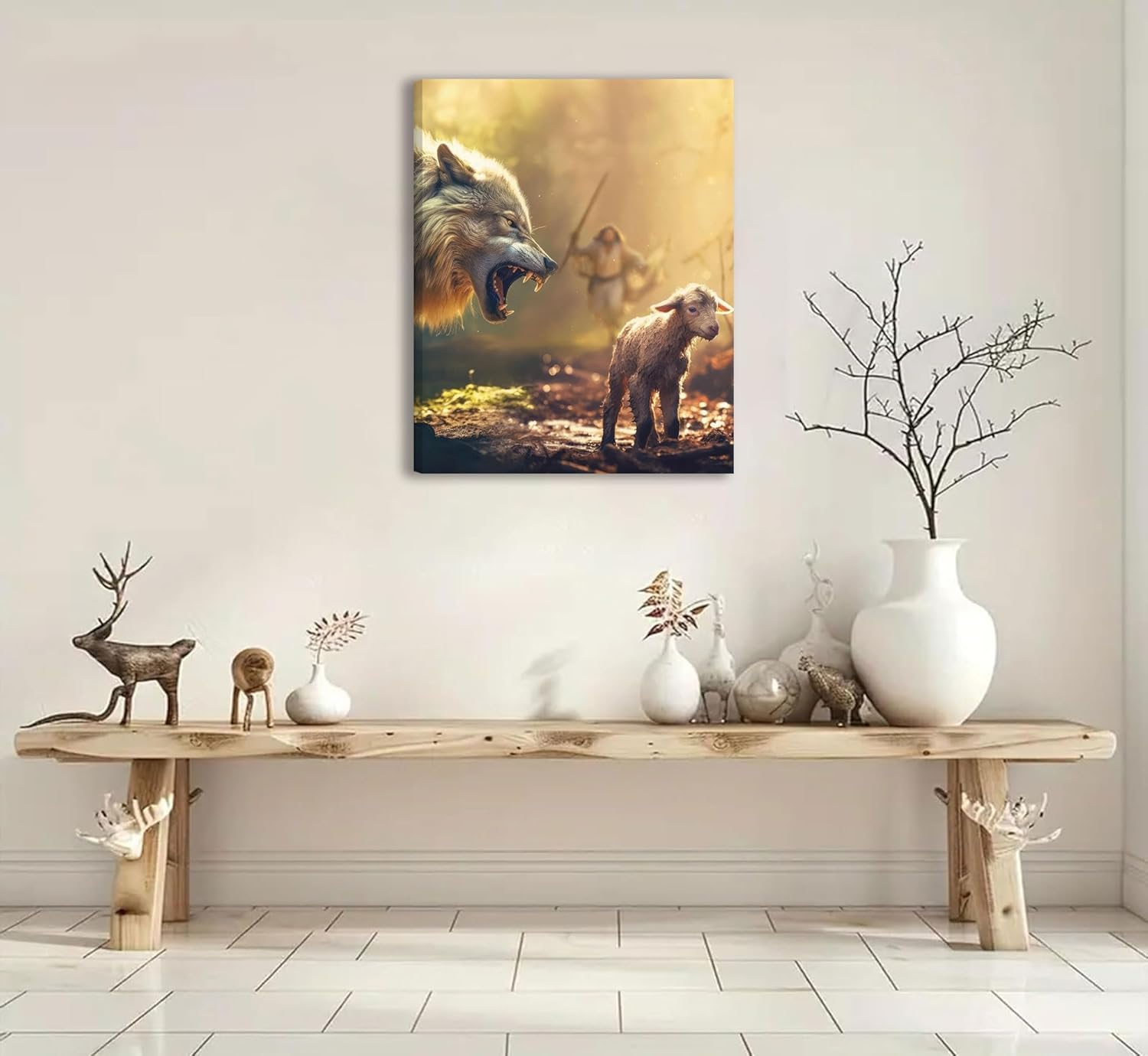 Jesus Saves The Lamb Canvas Wall Art Jesus Running Towards The Wolf And The Lamb Picture Wall Decor Christian Jesus Poster Print Painting for Living Room Bedroom Church Home Decoration