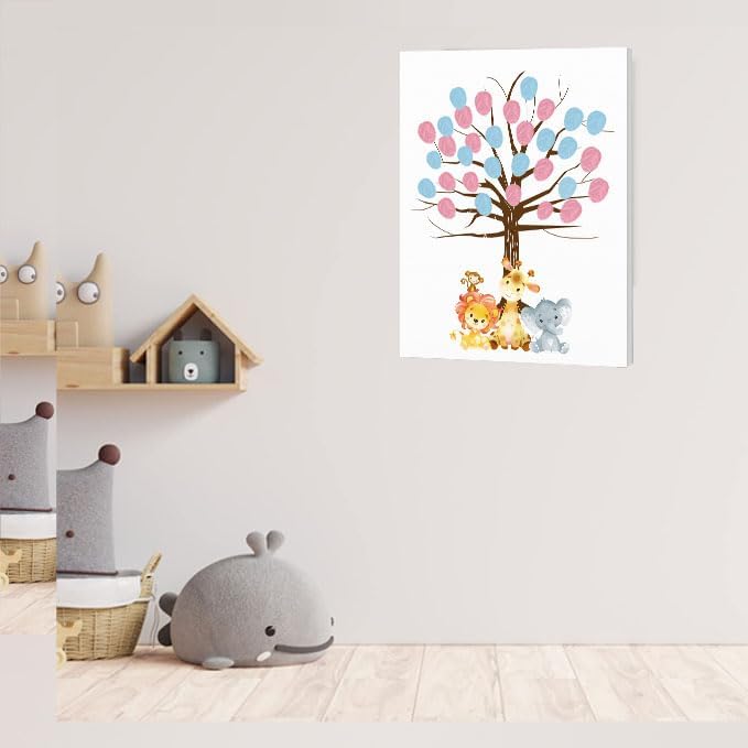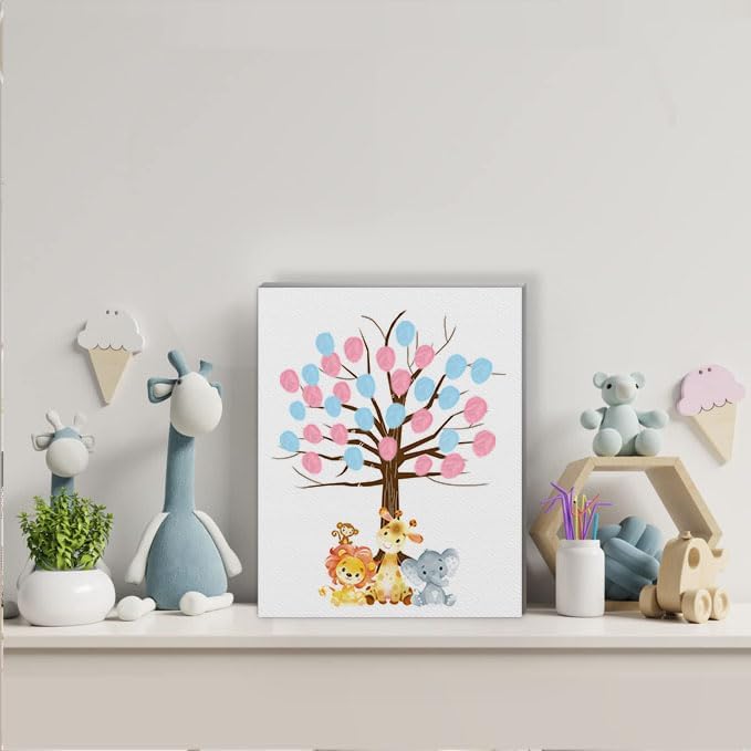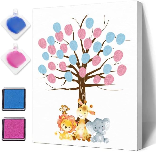 Jungle Gender Reveal Fingerprint Leaves Tree, Funny Baby Shower Guest Book Party Game, Gender Reveal Baby Shower Party Ideas, Gender Reveal Keepsake, Special Meaningful Canvas Decoration