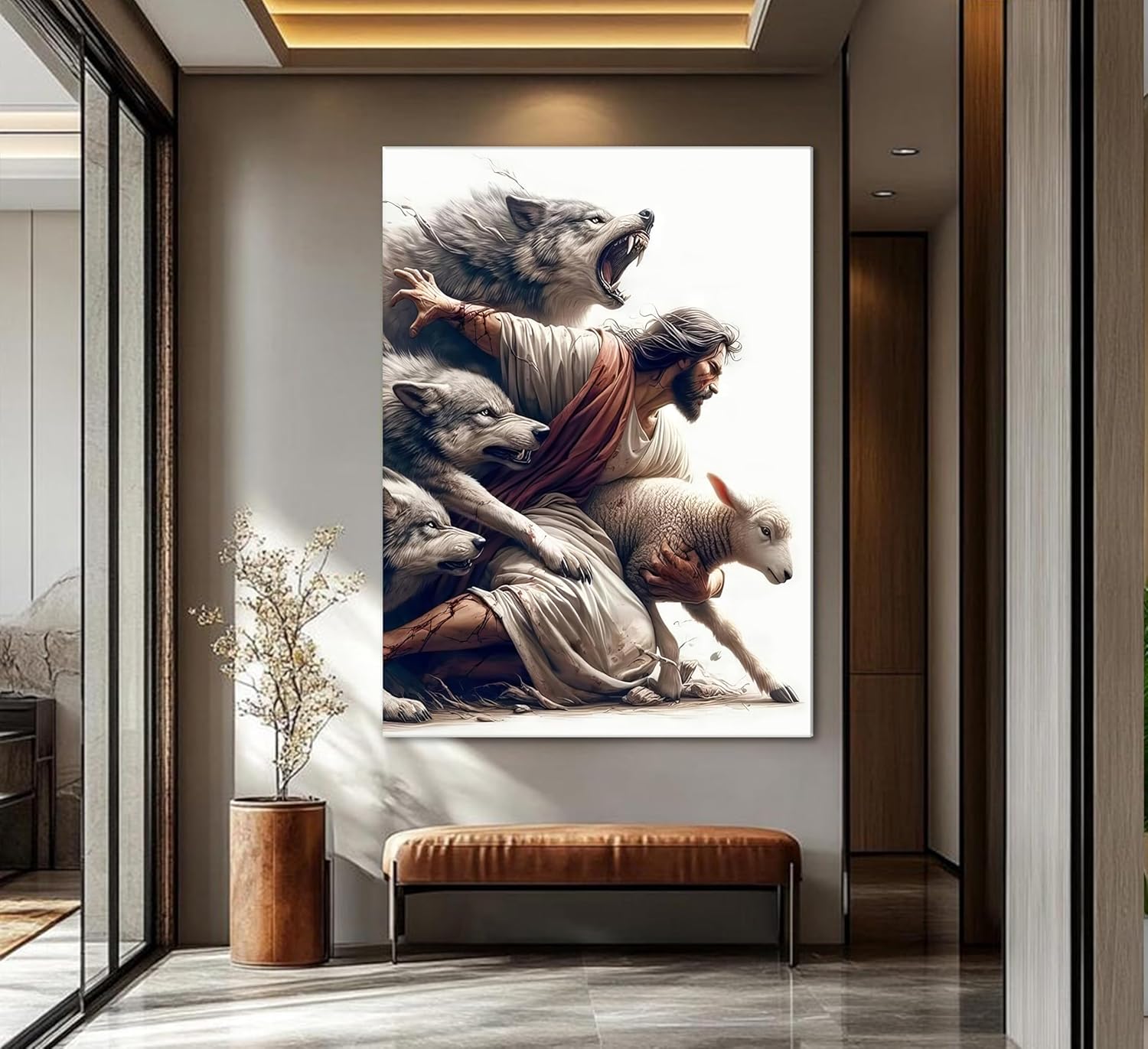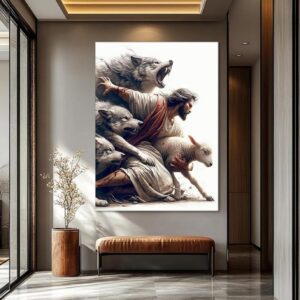 Jesus Saves the Lost Lamb Picture Wall Decor Jesus Protect a Lamb from Wolves Painting