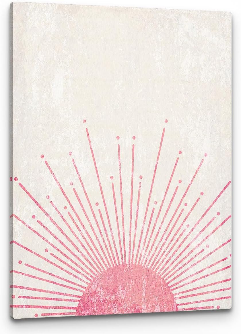 PHAMTE Boho Rustic Orange Sunset Sunrise Sun Rays Print Framed Canvas Painting Artwork for Home Bathroom Girls Room Kitchen Office Decor (11×14 Inch)