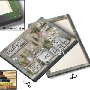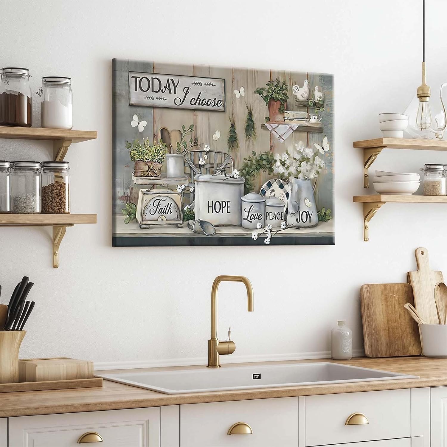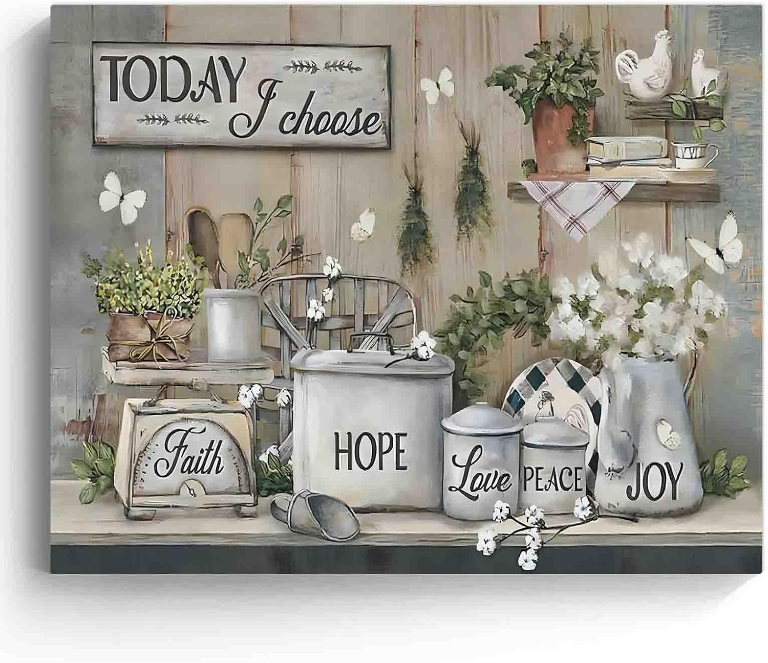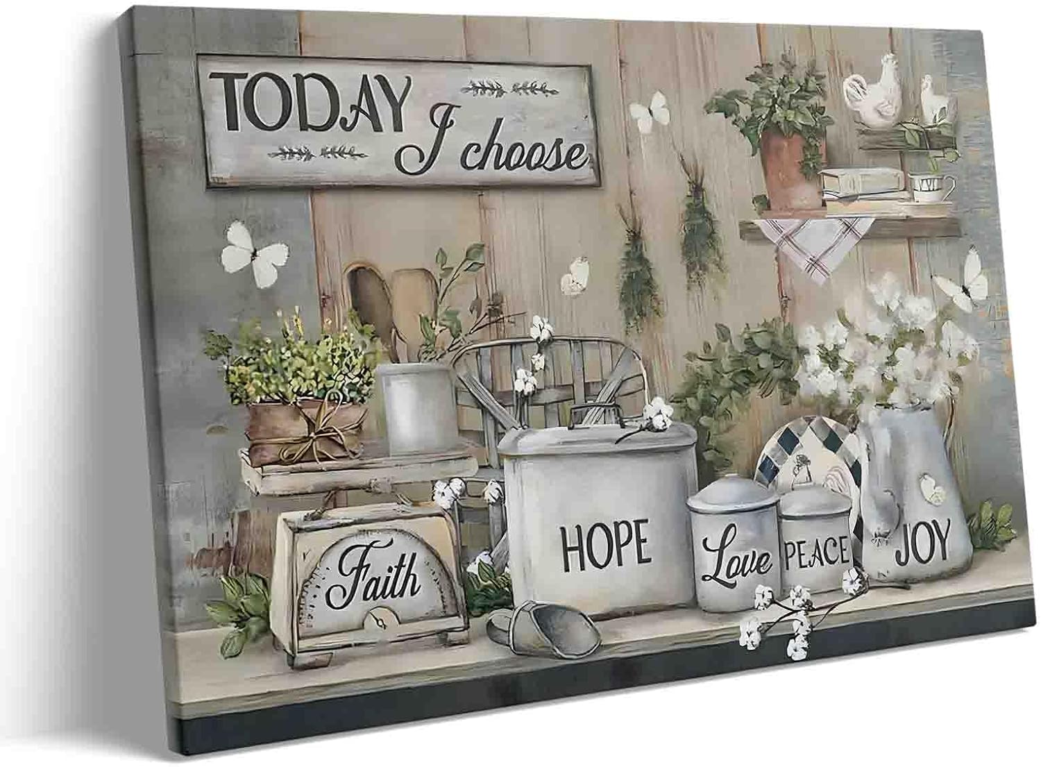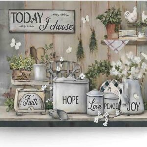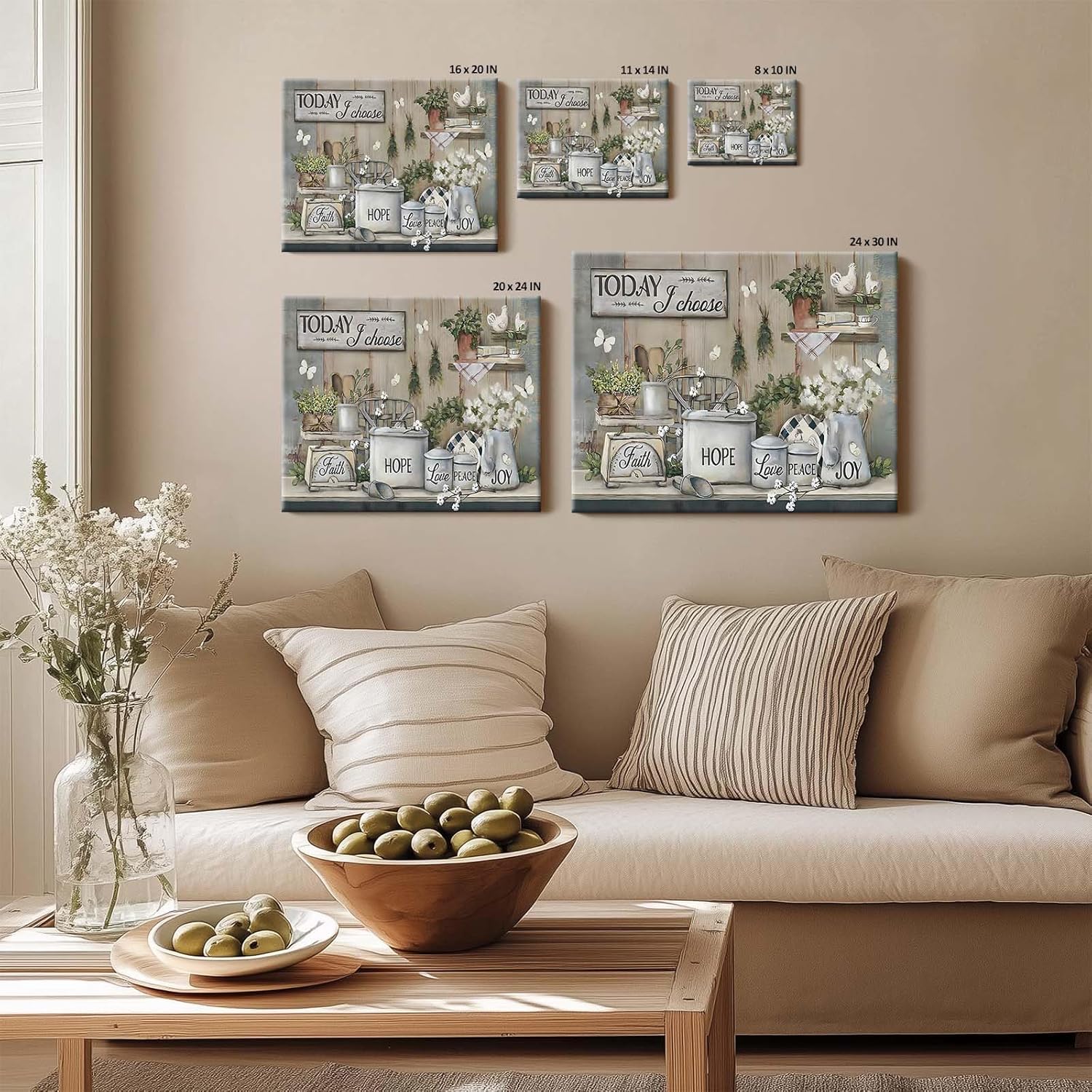 Rustic Inspirational Canvas Wall Art, “Today I Choose Faith, Hope, Love, Peace, Joy” Farmhouse Decor, Floral Print Framed Still Life Painting Artwork for Living Room Bathroom and Kitchen 16″ x 20″