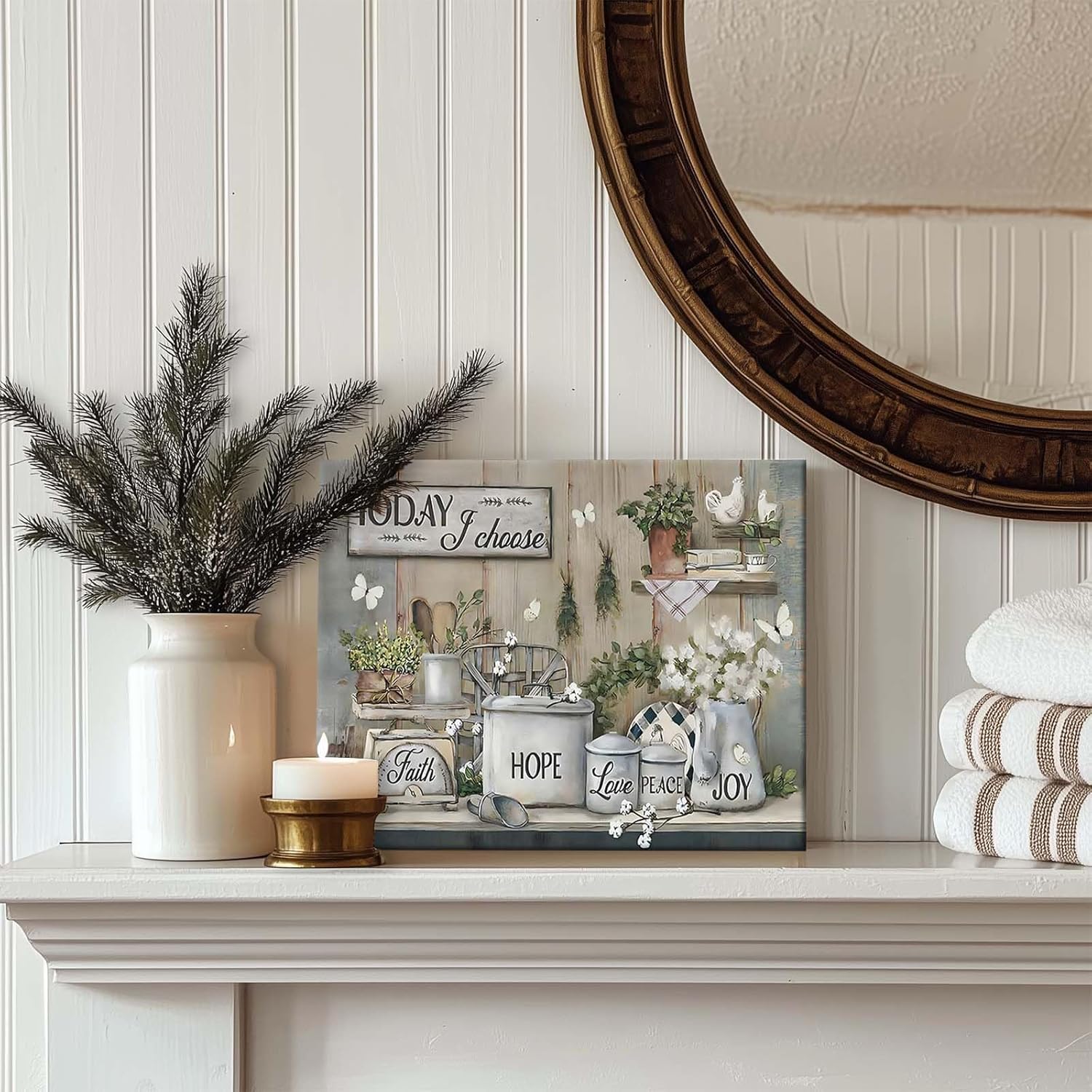 Rustic Inspirational Canvas Wall Art, Today I Choose Faith, Hope, Love, Peace, Joy Farmhouse Wall Decor, Floral Print Framed Still Life Painting Artwork for Living Room Bathroom Kitchen 24″ x 30″